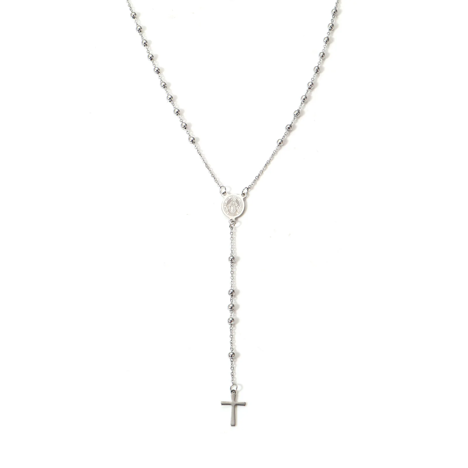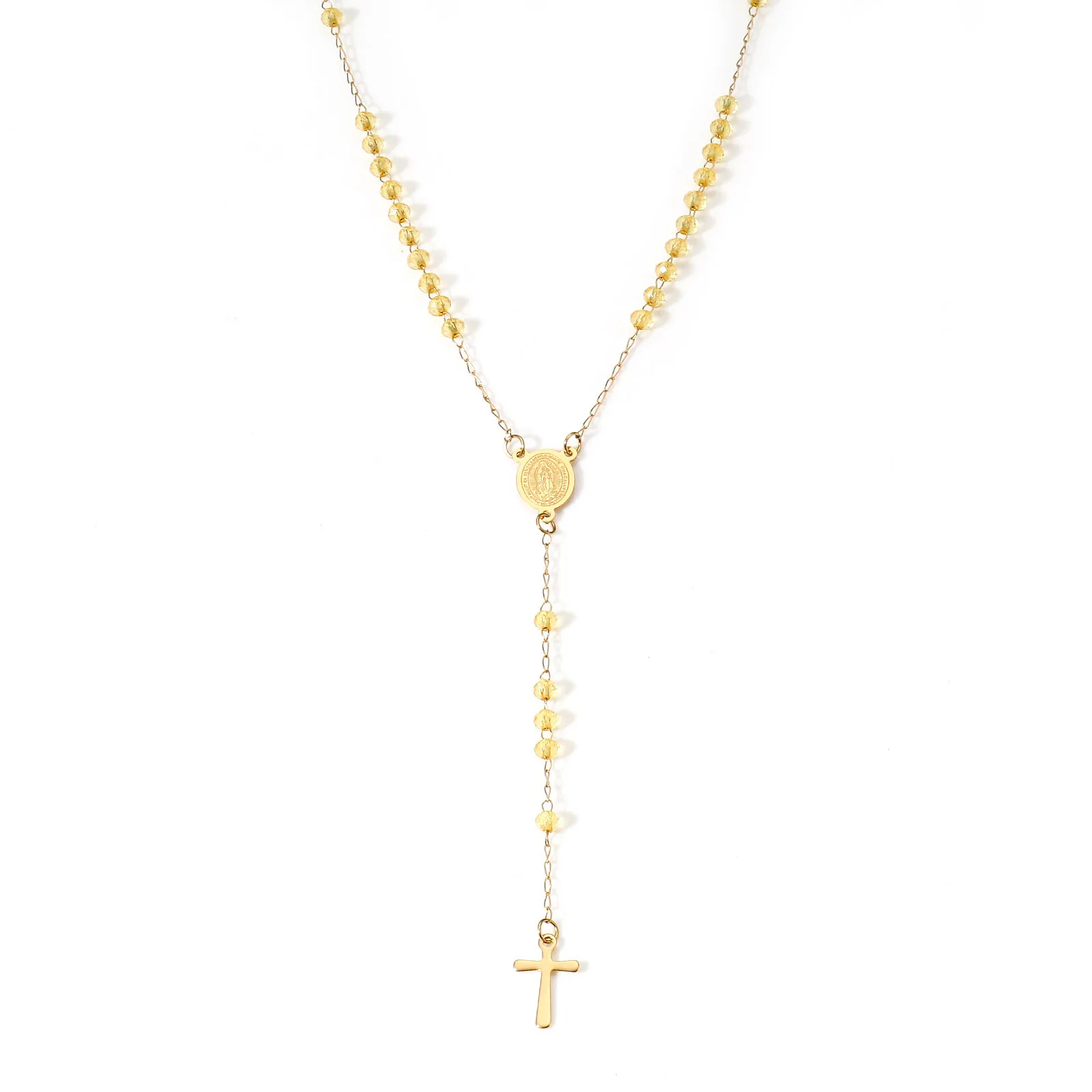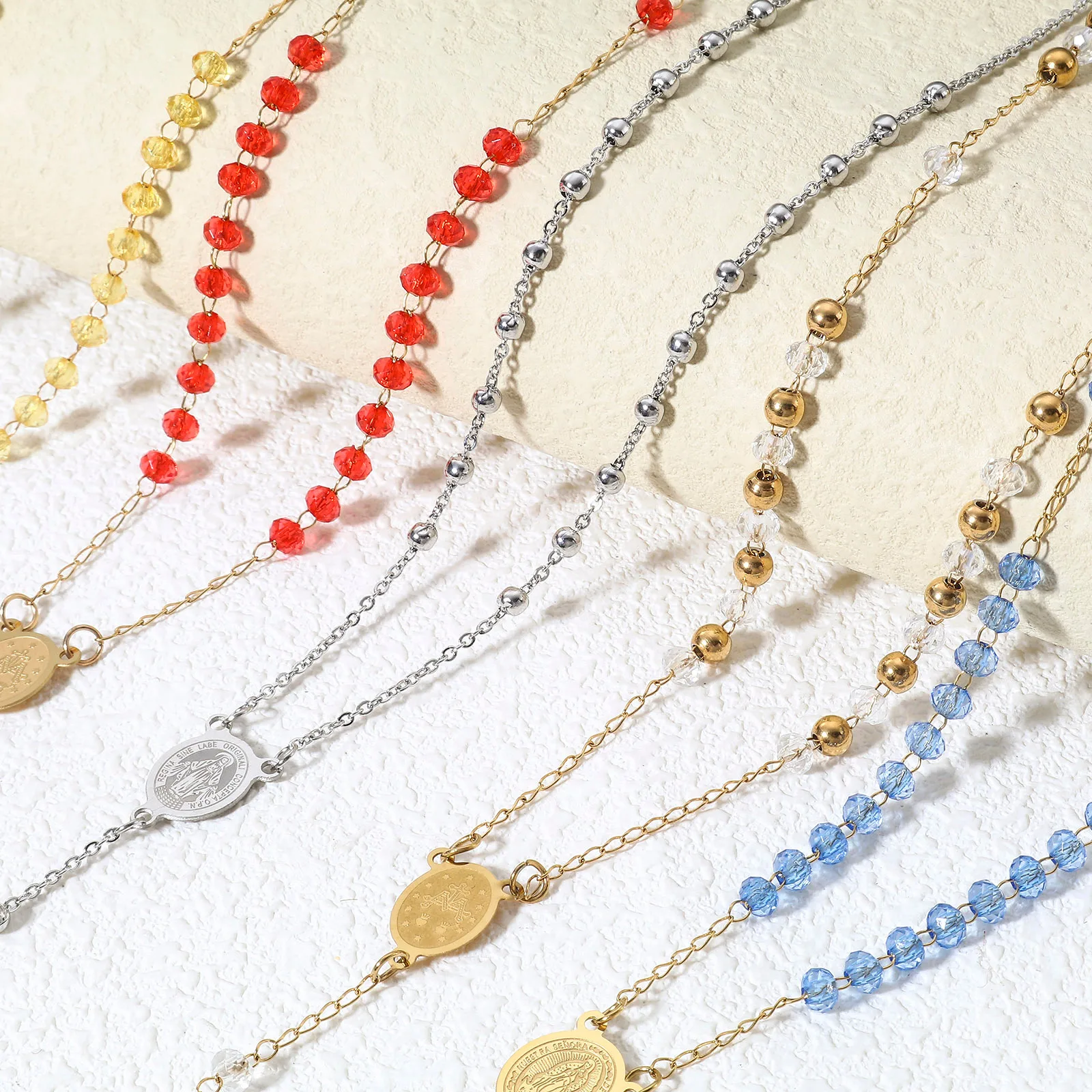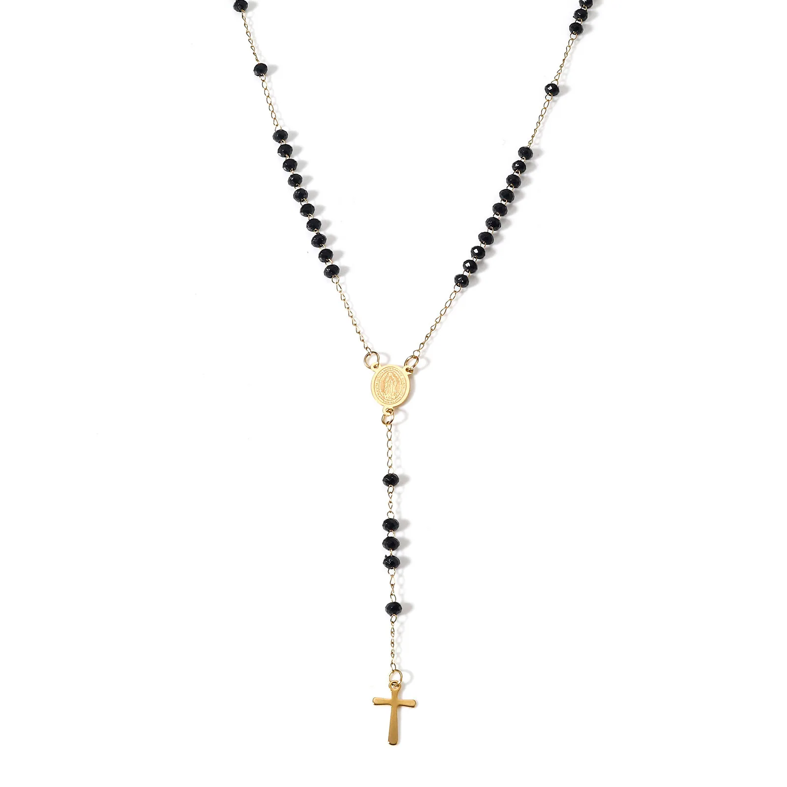 1 Piece 304 Stainless Steel & Glass Religious Handmade Link Chain Necklace Gold Color Cross Virgin Mary Charm 54cm(21 2/8") long