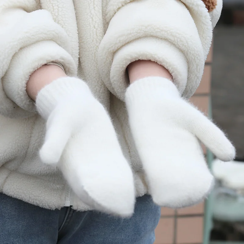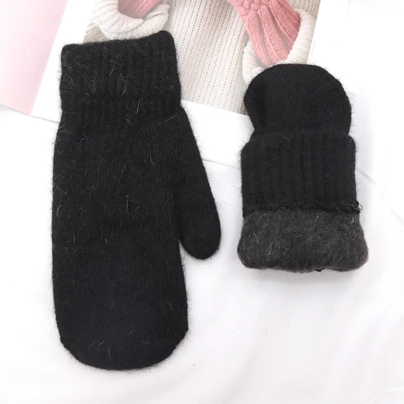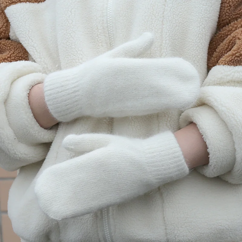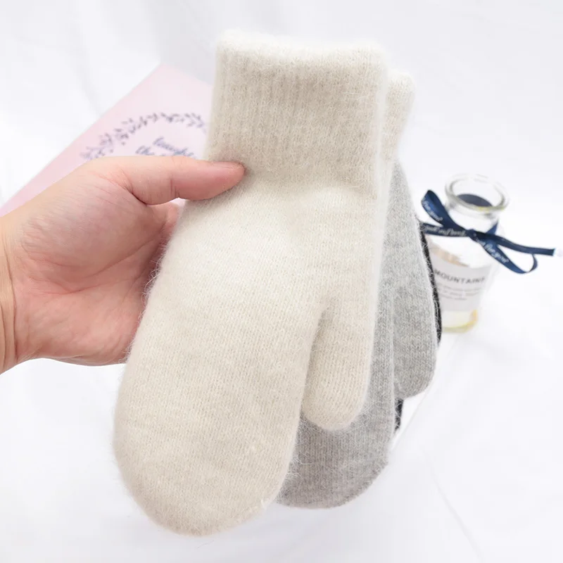 1Pair Cute Winter Double-layer Rabbit Hair Gloves Female Plush Solid Color All Fingers Women Girls Soft Thicken Warm Mittens