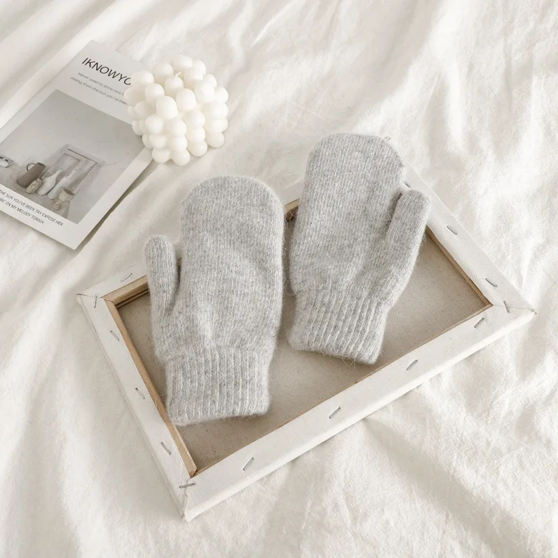 2021 Winter Keep Warm Plus Cashmere Solid Elasticity Soft Full Fingers Mittens Gloves for Women Rabbit Fur Knitted Cute Gloves