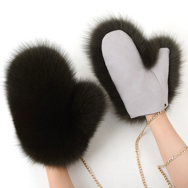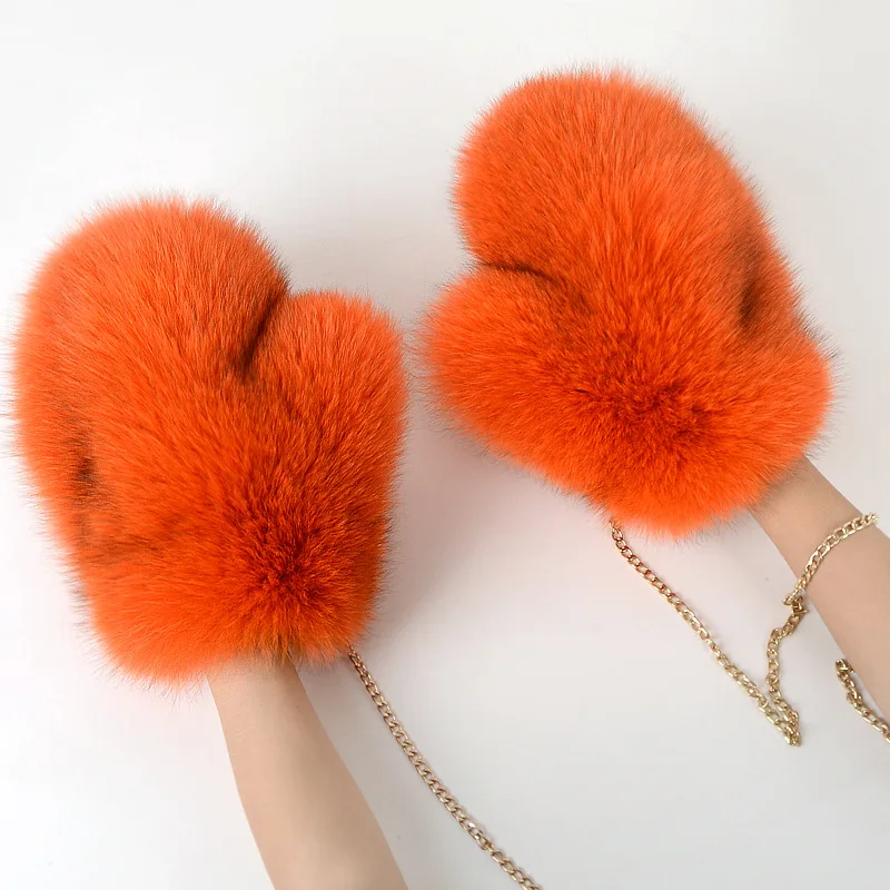 2024 New Brand Winter Women Natural Real Fox Fur Gloves Warm 100% Genuine Fox Fur Mittens Girl Fashion Luxur Real Fox Fur Glove