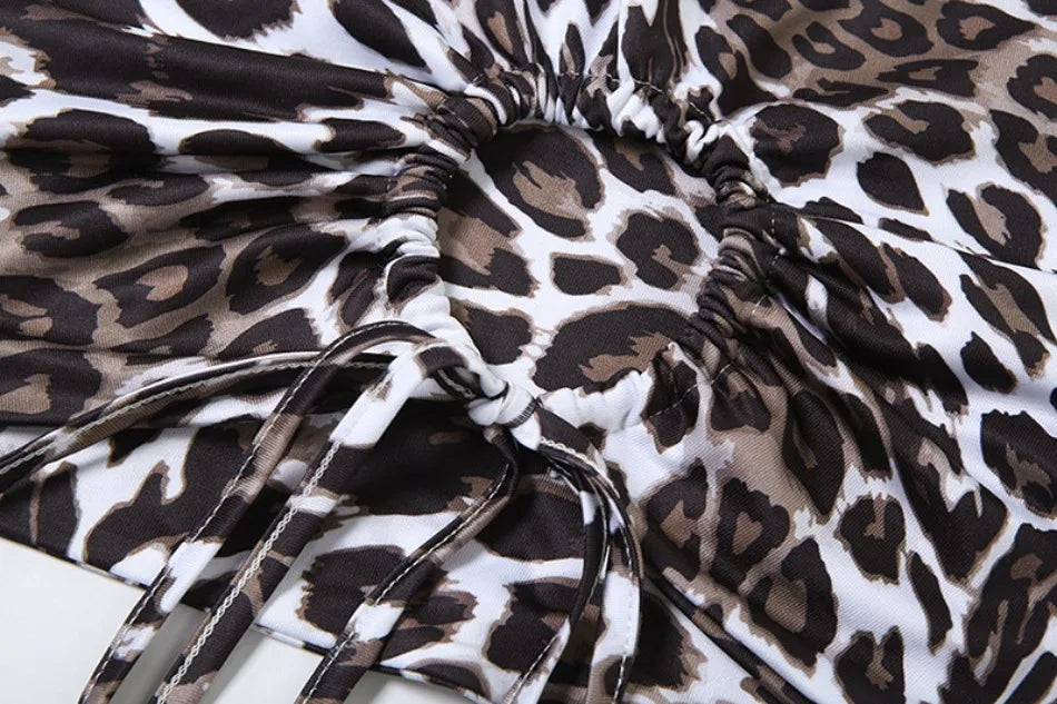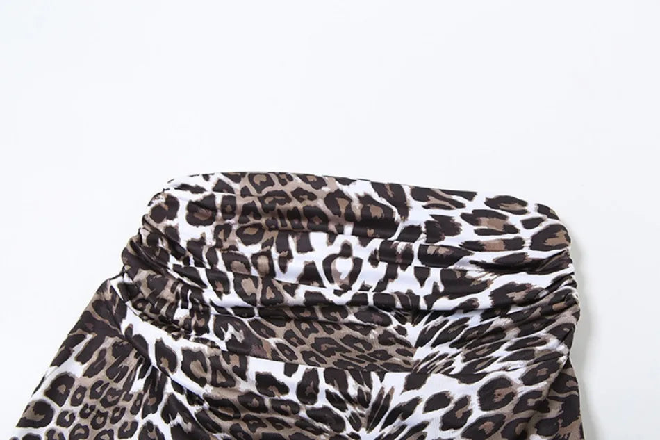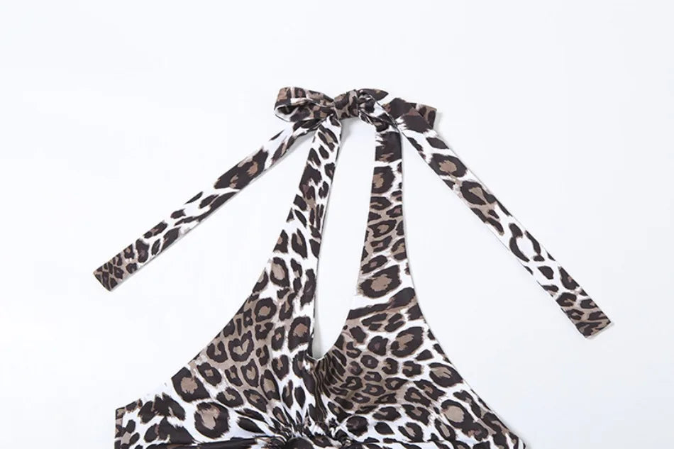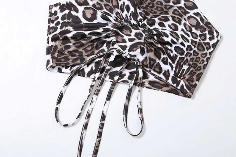 2024 Summer Women's Dress Set Elegant Sexy Backless Sleeveless Lace-up Top Slim Fit Long Skirt Leopard Print Suit Holiday Beach