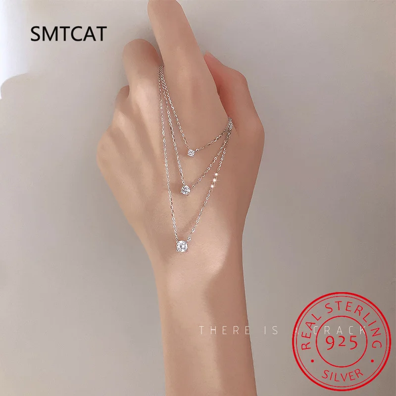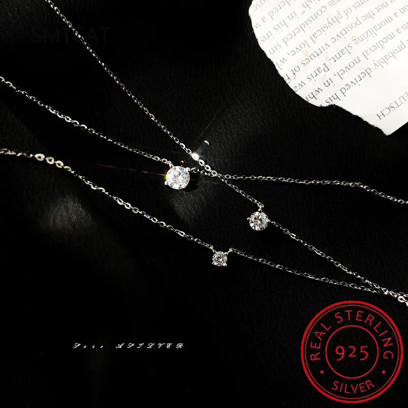 925 Sterling Silver Moissanite 1-3 Carat Set Chain Necklace Advanced Light Luxury Niche Casual Elegant Ladies Send Girlfriend
