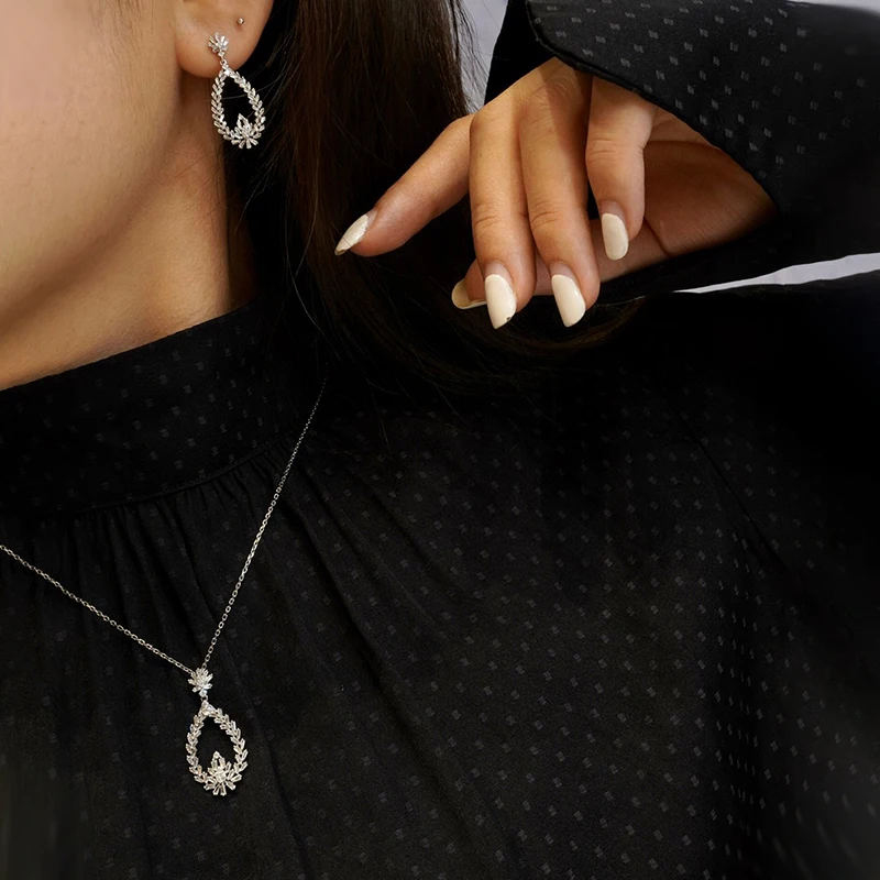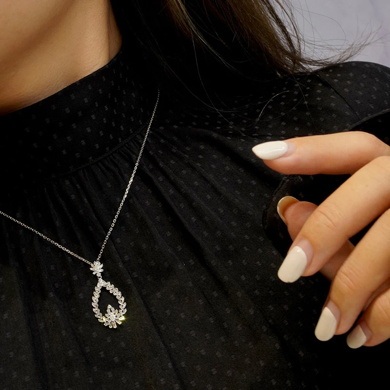 Aazuo Highquality Jewelryset 18K Orignal White Gold Real Diamonds 0.85ct Necklace Gifted for Women Wedding Link Chain Au750