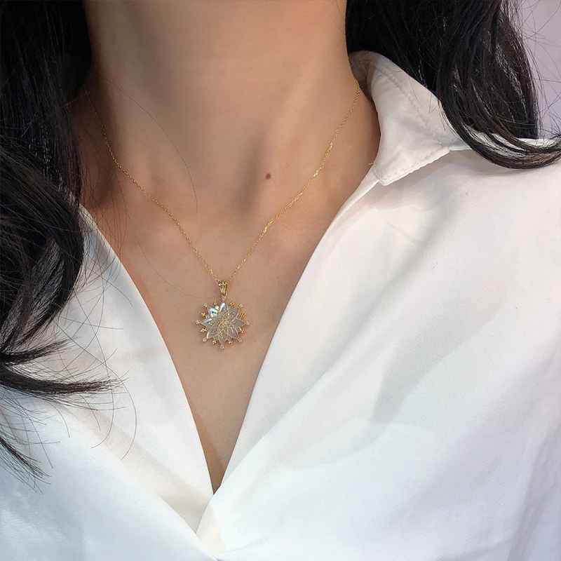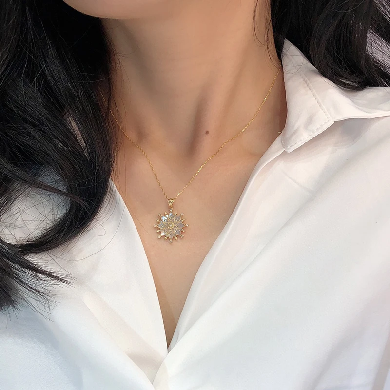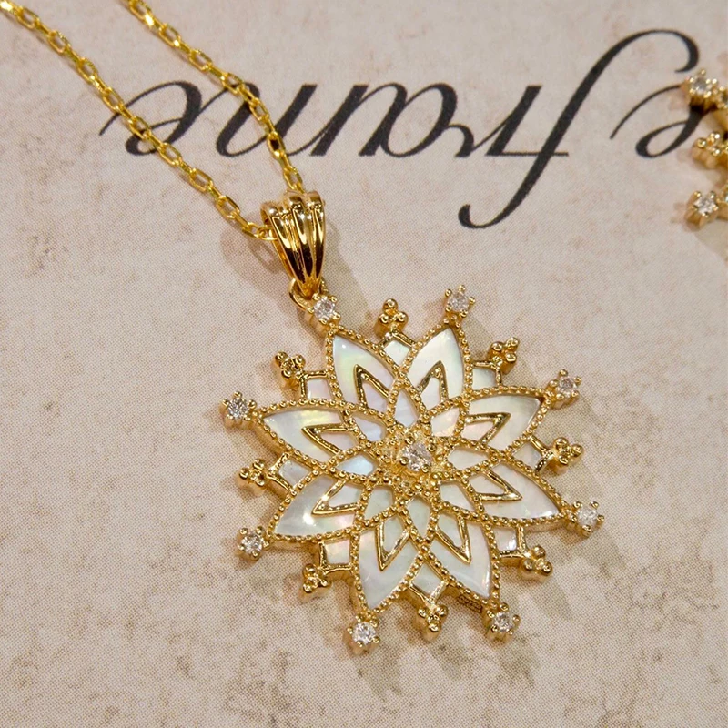 Aazuo Real Jewelry 18K Yellow gold Real Diamonds Natural MOP Fairy Flower Necklace Gifted For Women Luxury Party 18 Inch Au750