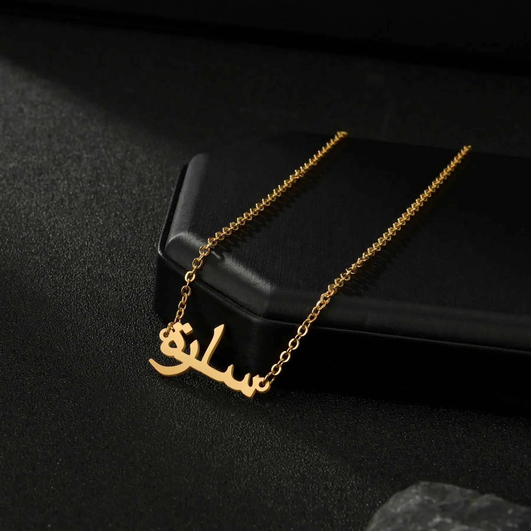 Acheerup Personalized Arabic Names Stainless Steel Women Necklaces Customized Jewelry Islamic Nameplate Chain Pendant Men Gift