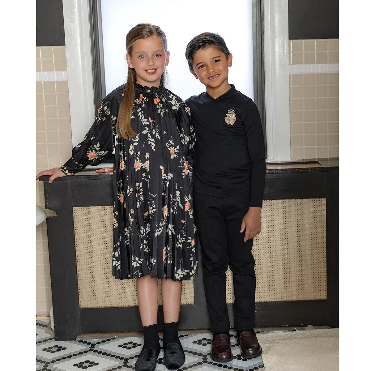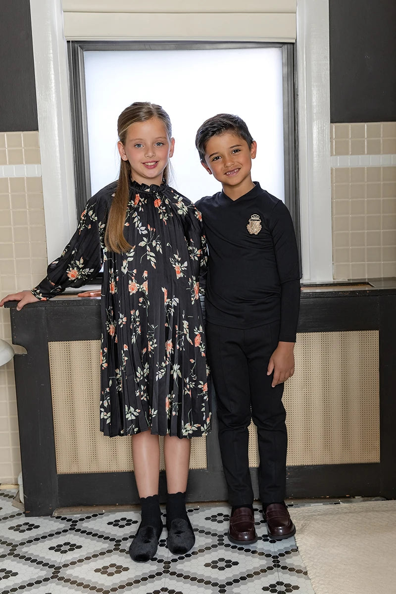 AP Floral Pleated Satin Collection 2025 Autumn Long Sleeve Girls Floral Pleated Dress Baby Romper Cute, #6007