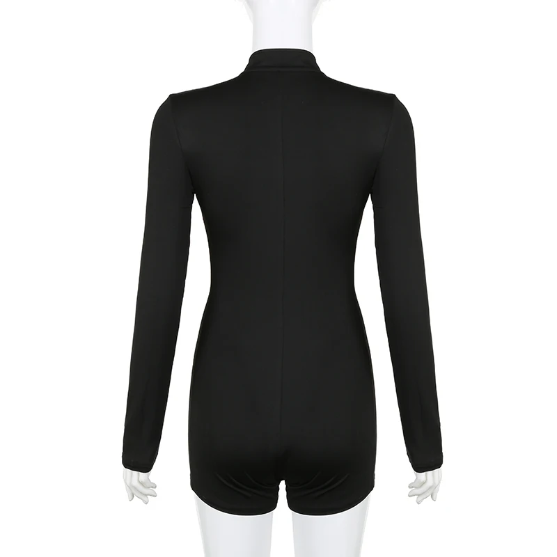 BIIKPIIK Zipper Skinny Women Short Rompers Casual Concise Black Playsuits All-match Sporty Knitted Overalls Body-shaping Fitness