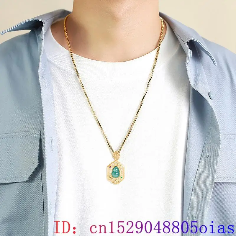 Blue Jadeite Gourd Pendant Necklace 18K Gold Plated Natural Burmese Jade Accessories Gifts for Women Real Jewelry Charms Gift
