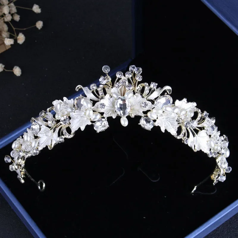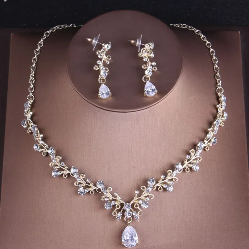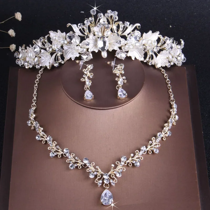 Bridal Headwear Set Crown Necklace Earrings Four Piece Classic Tiaras Suitable for Women's Wedding and Birthday Parties