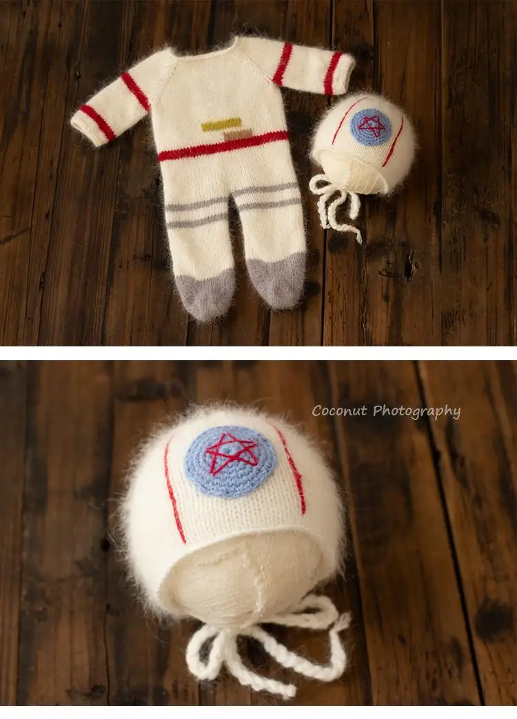 Coconut Newborn Baby Boys Photography Props Wool Knitted Space Astronaut Outfits Hat Clothes Costume Studio Photo Shoot Props