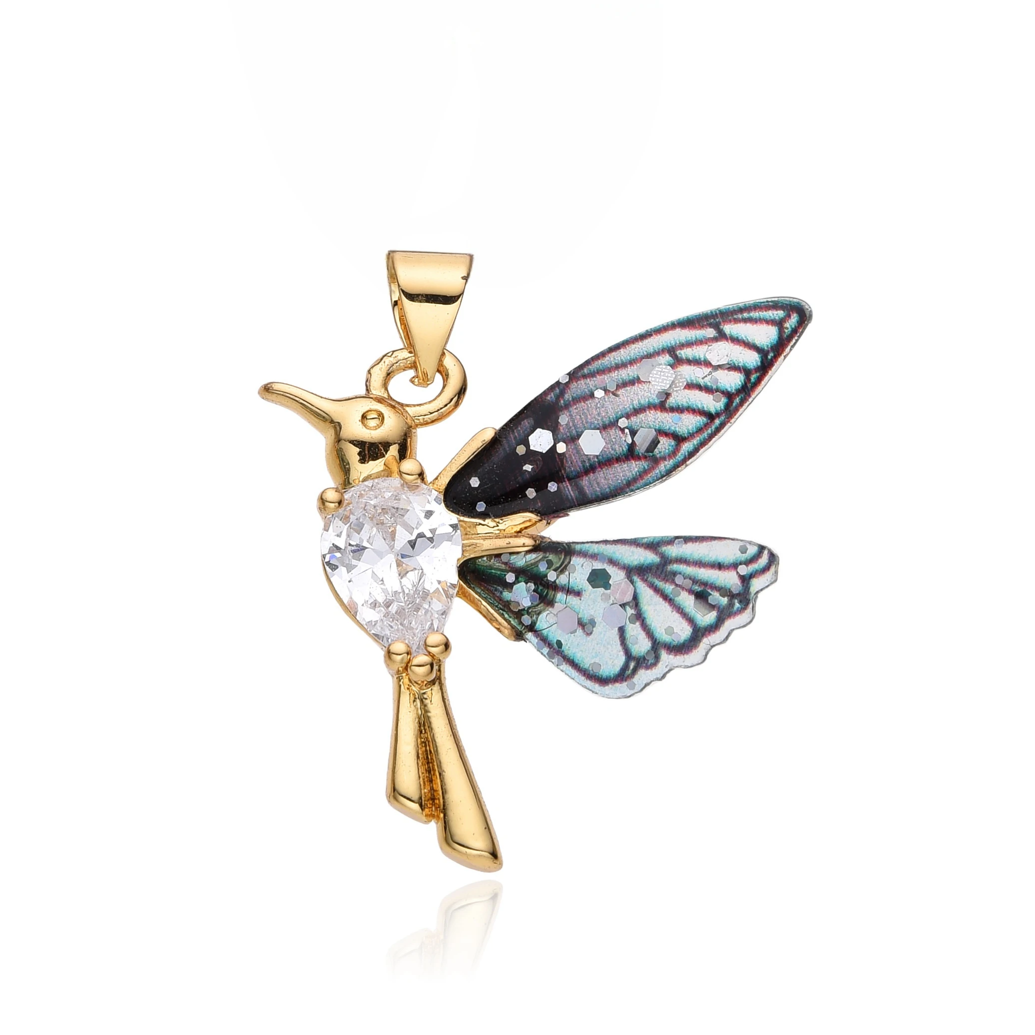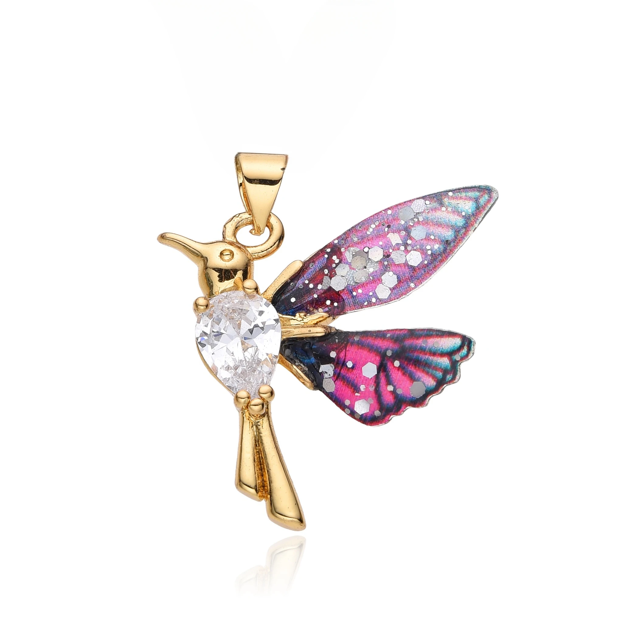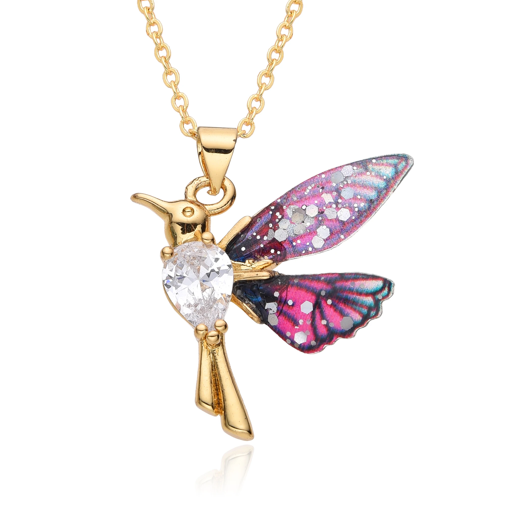 Colorful Resin Hummingbird Charms Gold Color Inlaid CZ Necklace for Women Choker Chain Pendant DIY Jewelry Accessories Wholesale