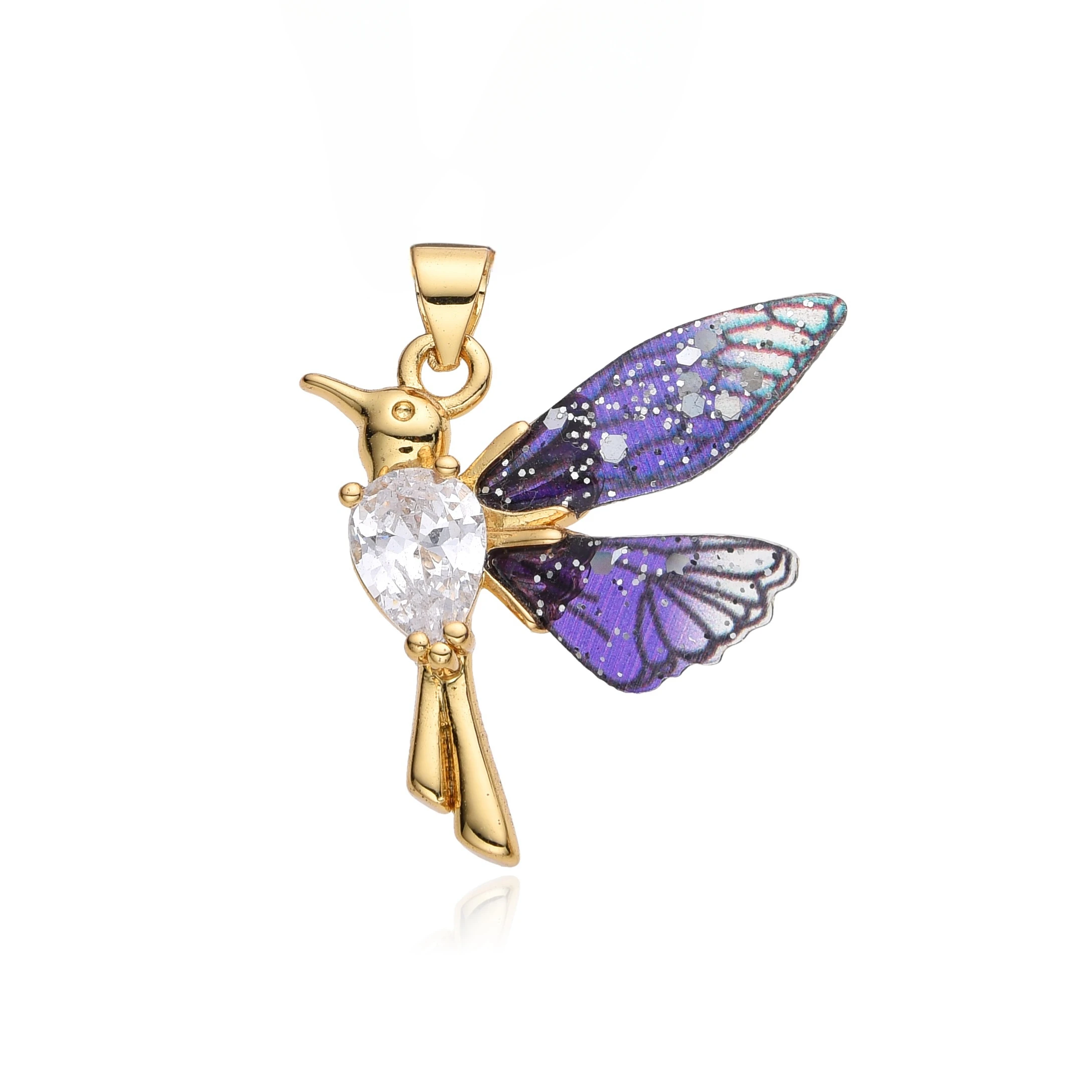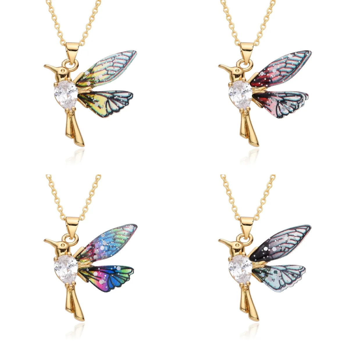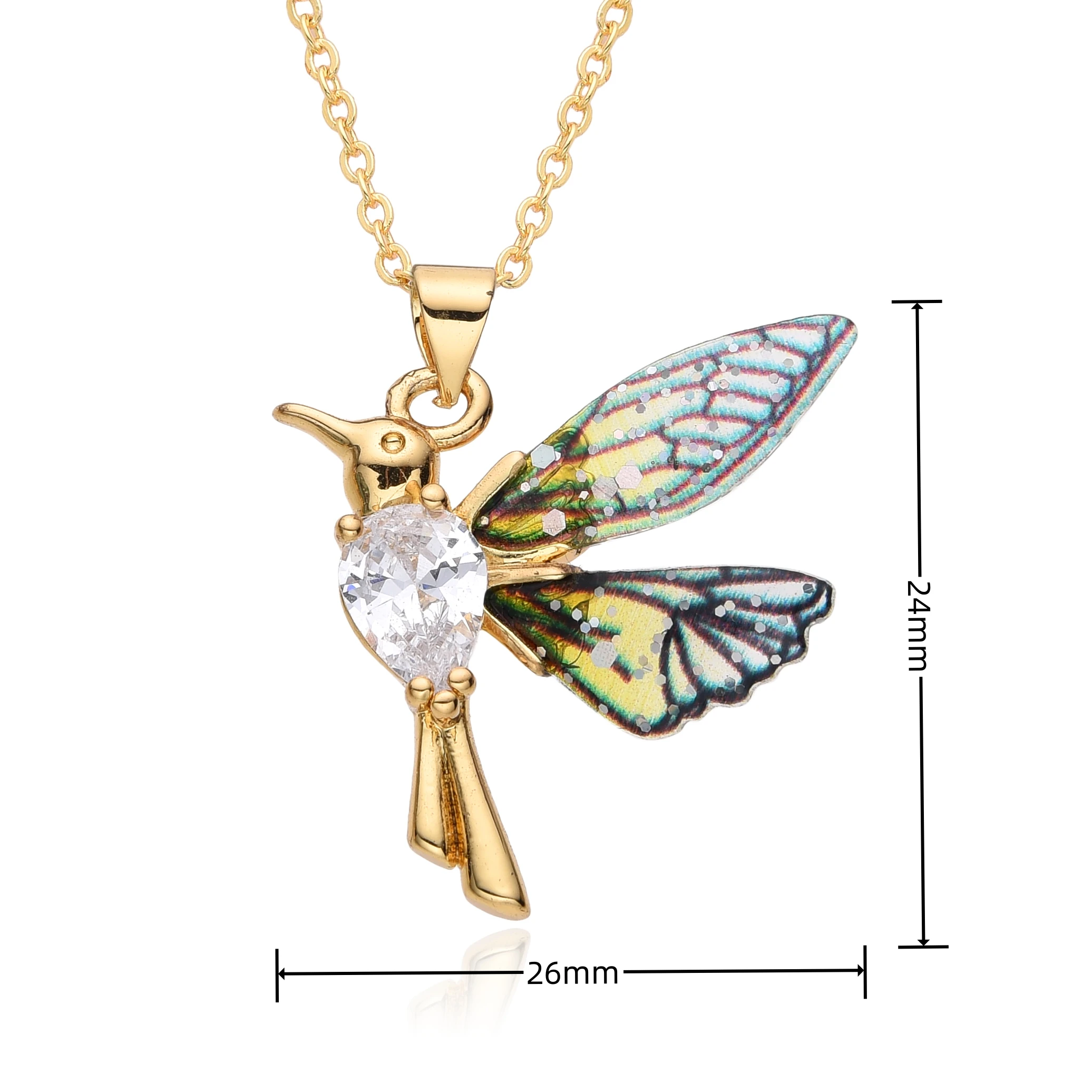 Colorful Resin Hummingbird Charms Gold Color Inlaid CZ Necklace for Women Choker Chain Pendant DIY Jewelry Accessories Wholesale