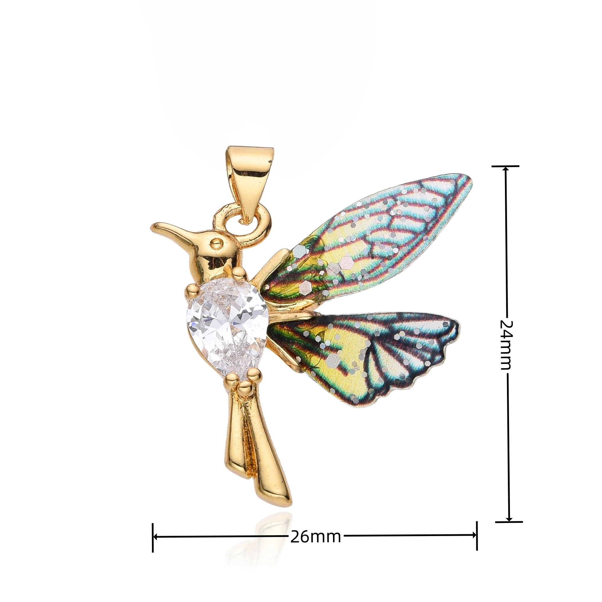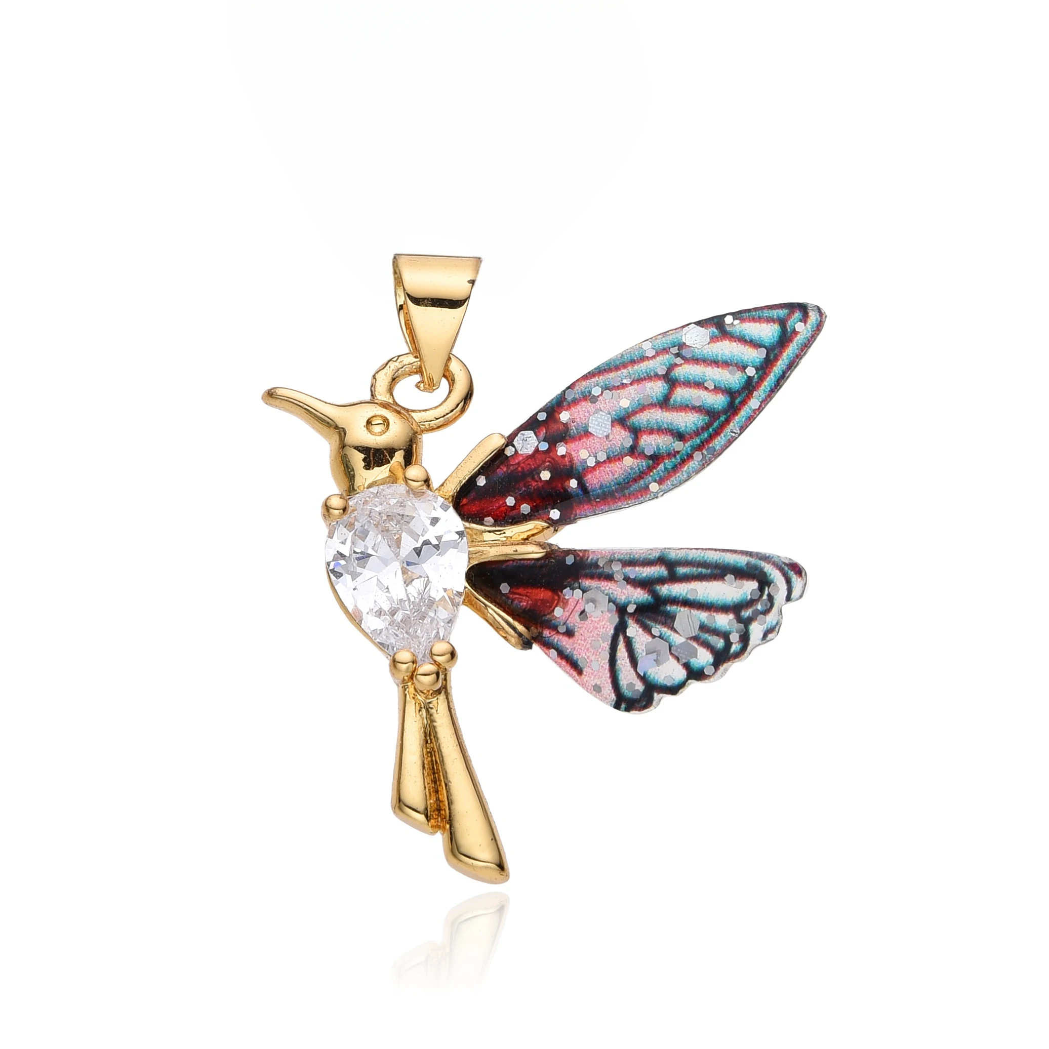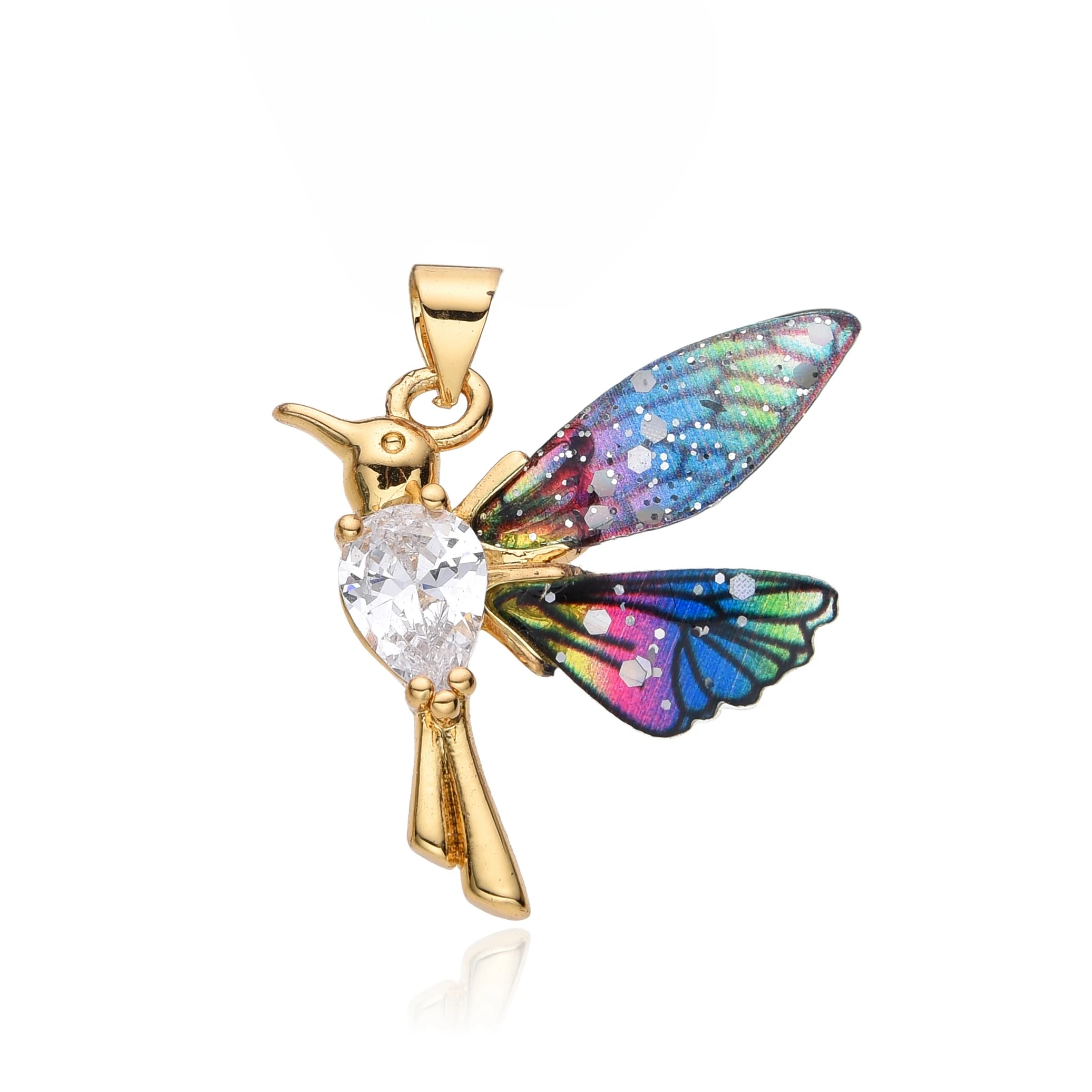 Charms/Pendant/Dangle/Necklace/Choker/Chain: New Fashion Y2k Colorful Resin Hummingbird Charms Gold Color Micro-inlaid Zircon Flying Bird Necklace for Women Friends Rainbow Color CZ Birdie Choker Chain Pendant Christmas Gift for Jewelry Making DIY Accessories Wholesale