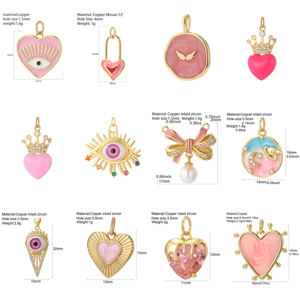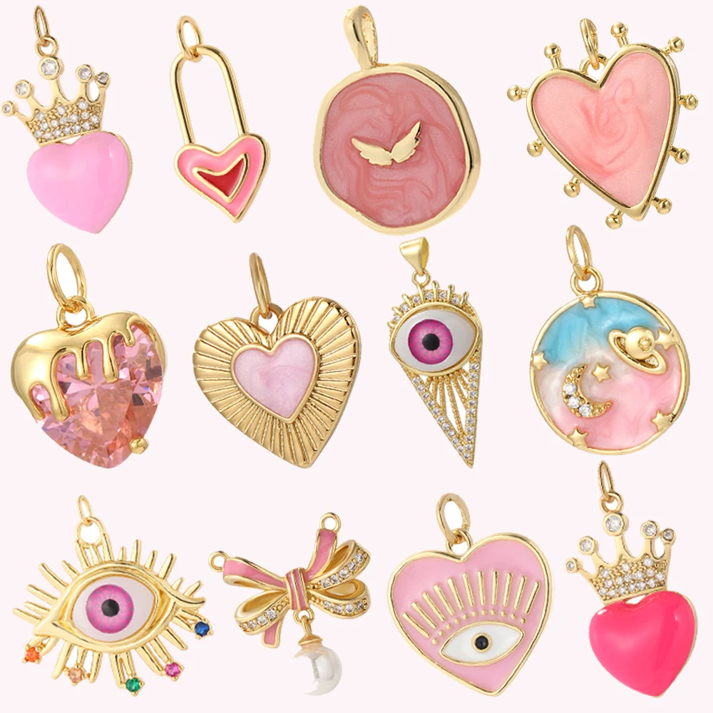 Cute Pink Love Charms for Jewelry Making Gold Color eyess Jewelry Dijes Diy Earring Necklace Bracelet Keychain Accessories