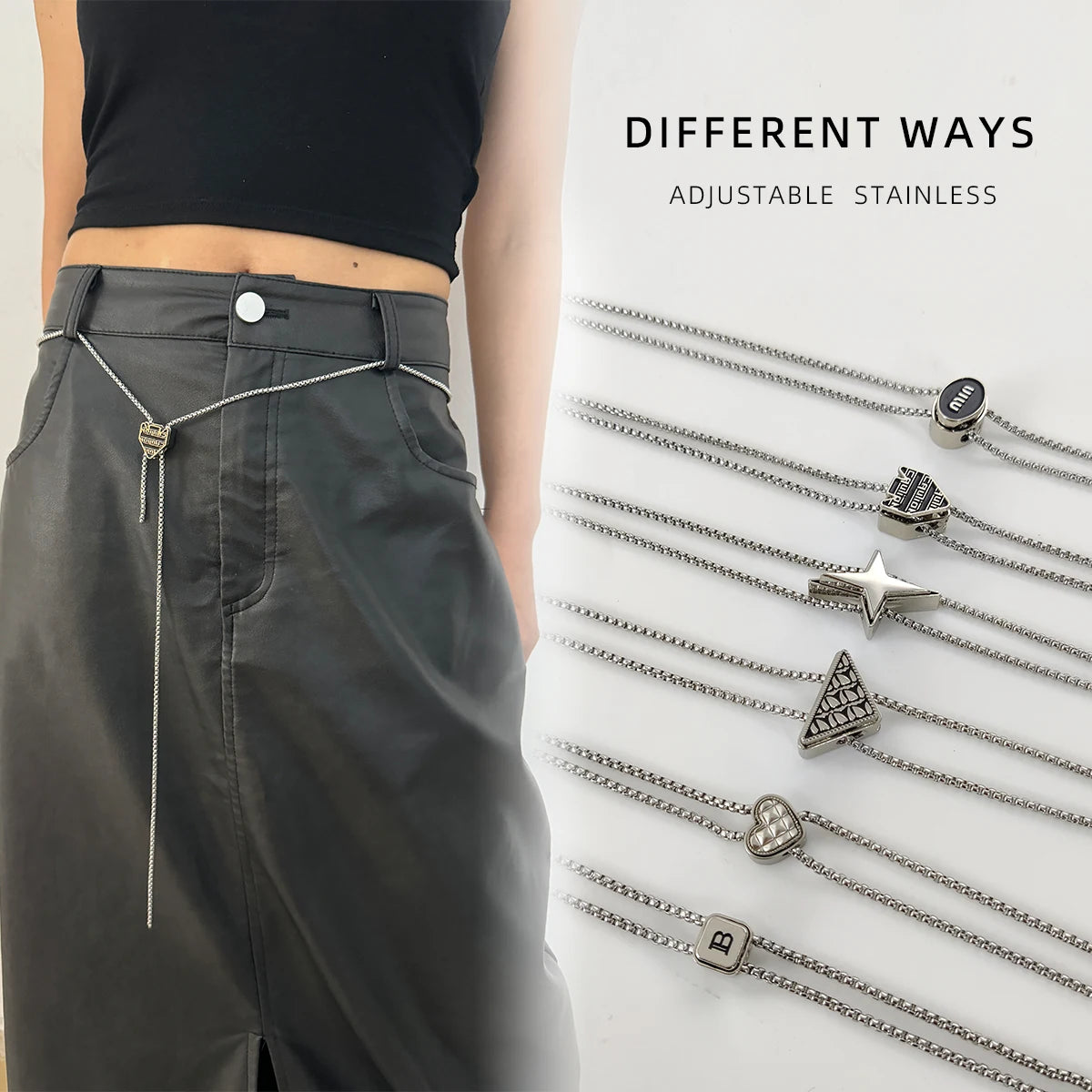 Dual-use Y2K Punk Silver Chain Belt Female Waist Designer Belts For Women High Quality Luxury Adjustable Easy Dress Waistband