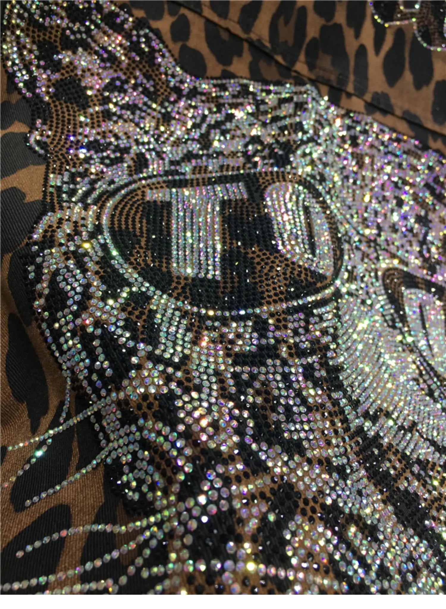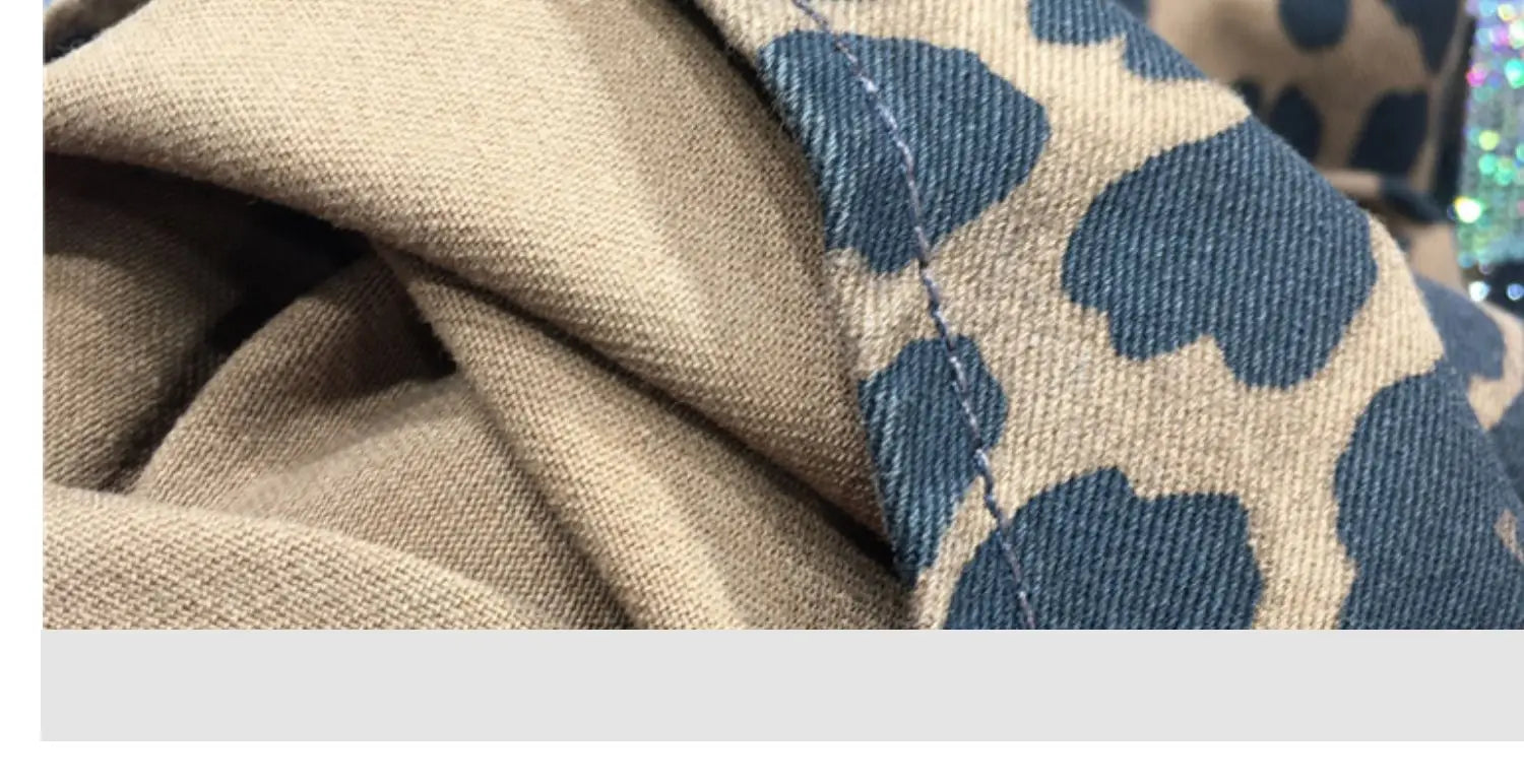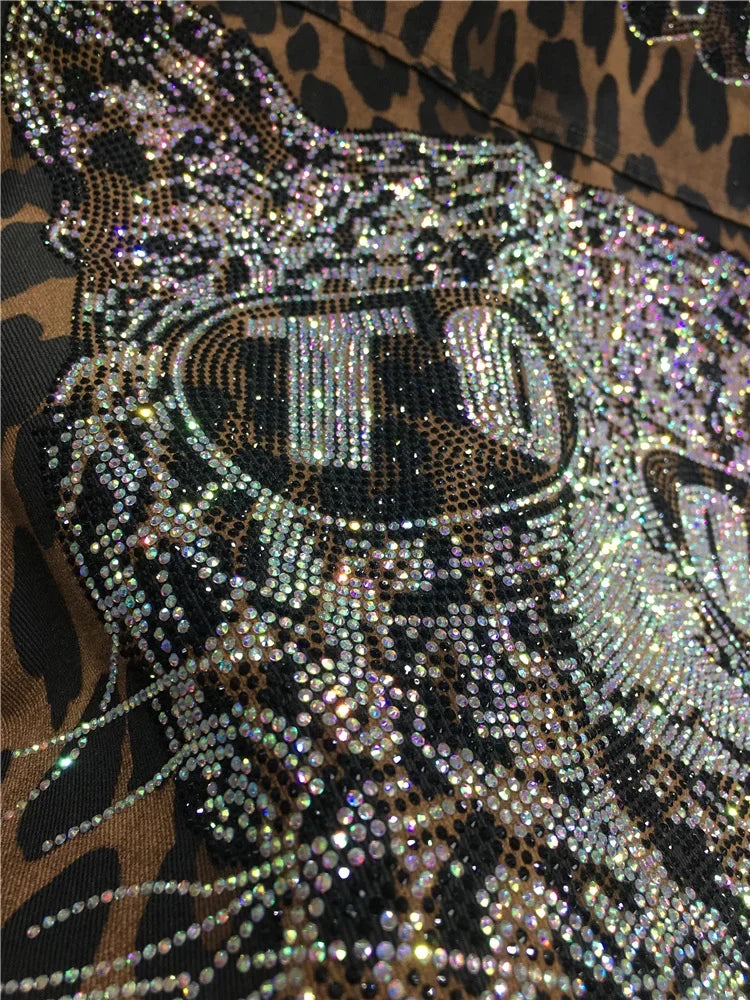 European Goods Heavy Industry Hot Diamond Shirt Women Domineering Tiger Head Leopard Print Cardigan Loose Autumn and Winter Coat