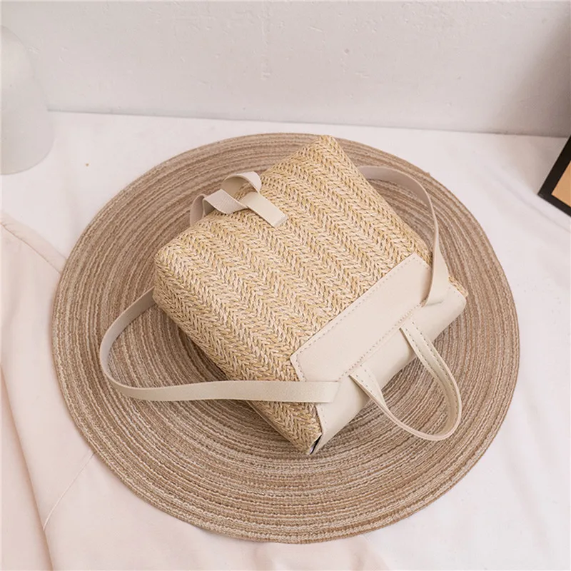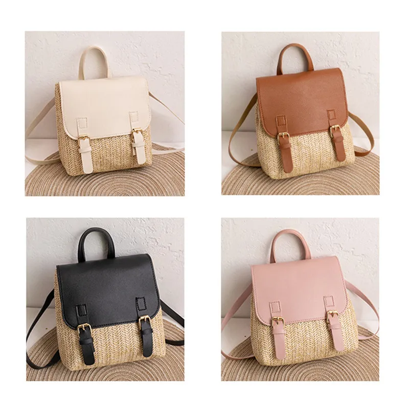Fashion Women's Shoulder Bag Vintage Straw Woven Bag PU Leather Shoulder Bag Elegant Luxury Versatile Designer Backpack Mochilas