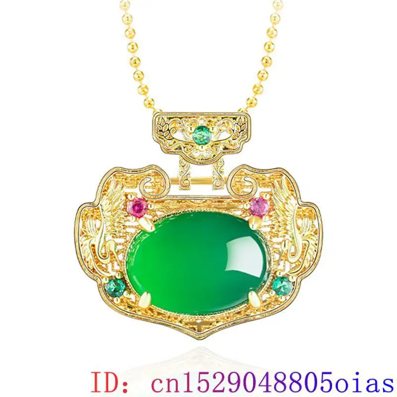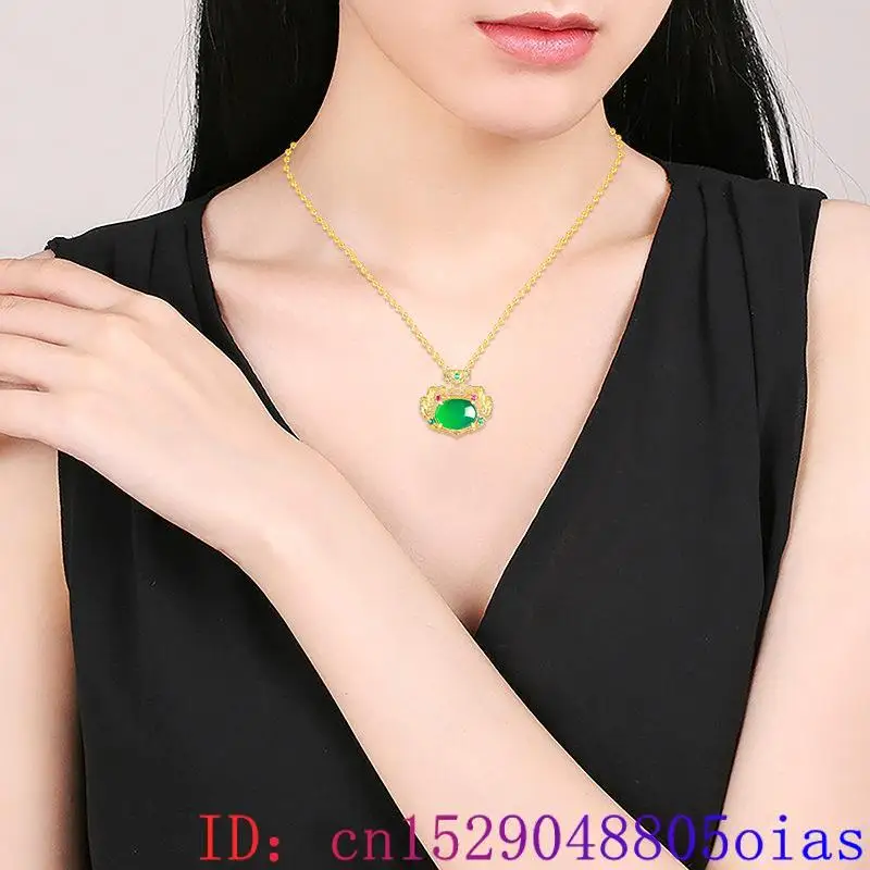 Green Real Jade Ruyi Pendant Necklace Gifts for Women Fashion Choker 18K Gold Plated Men Natural Jewelry Stone Vintage Charm