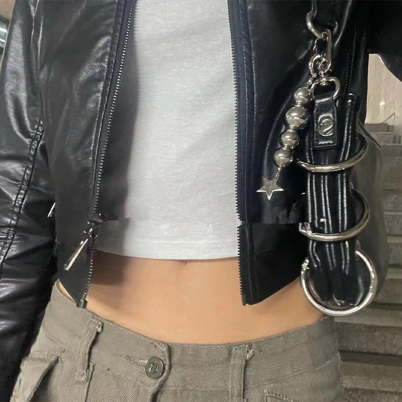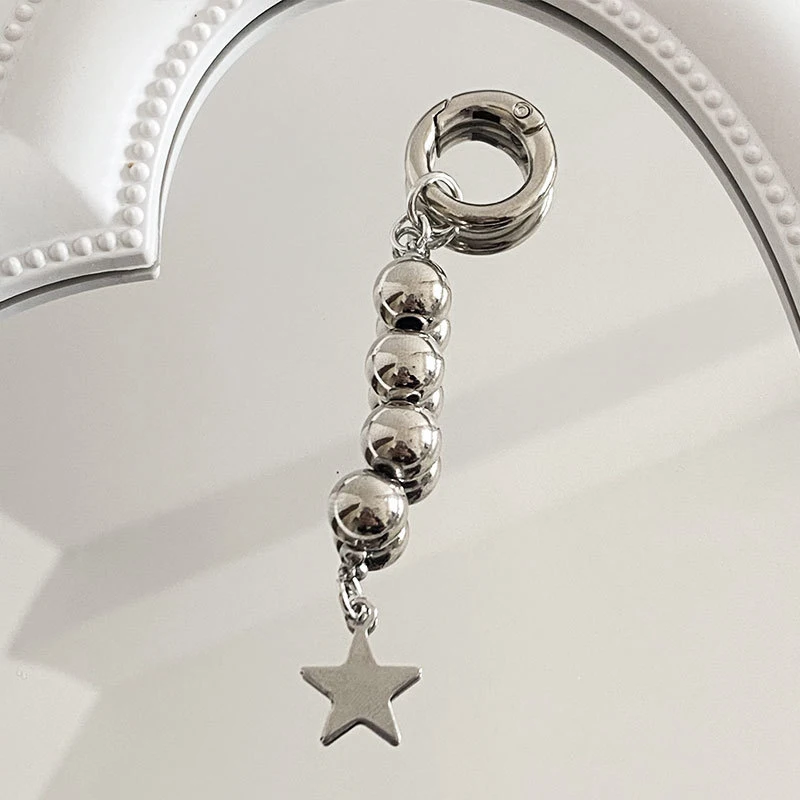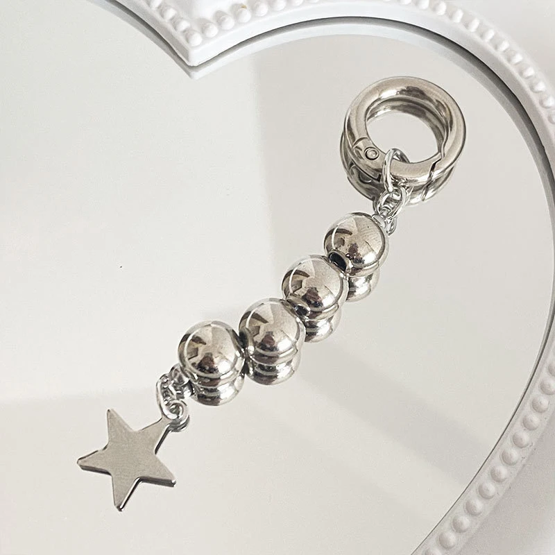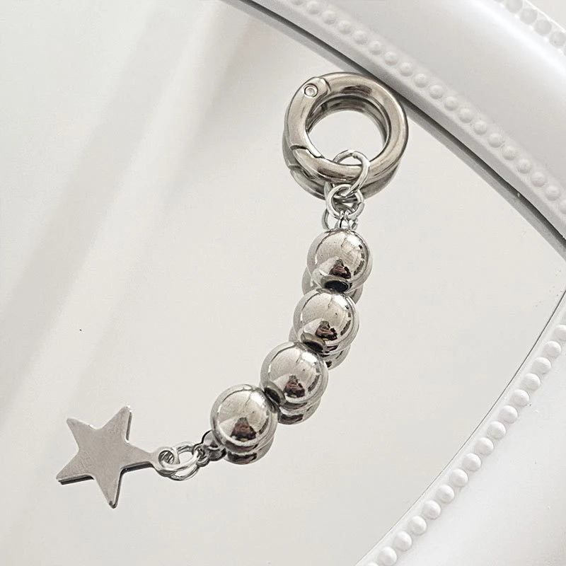 Harajuku Round Beads Star Keychain Charm Pendant For Women Sweet Cool Trend Fashion Vintage Aesthetic Accessories Gift