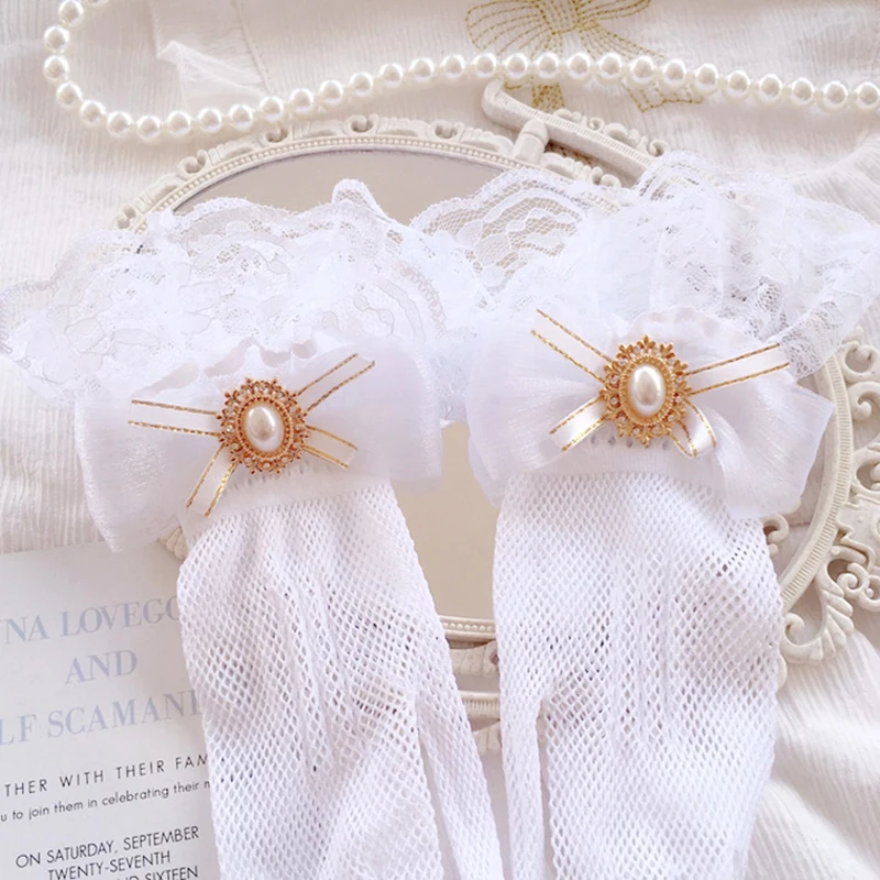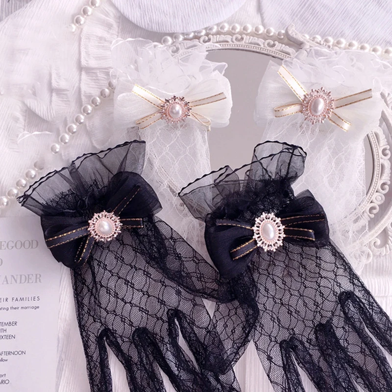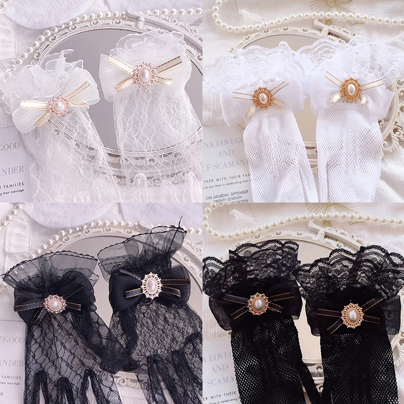Japanese Soft Girl Black White Lace Gloves Girl gothic Lolita Mesh Bow Flower Lace Gloves Sweet Wristband Maid Cosplay Jewelry