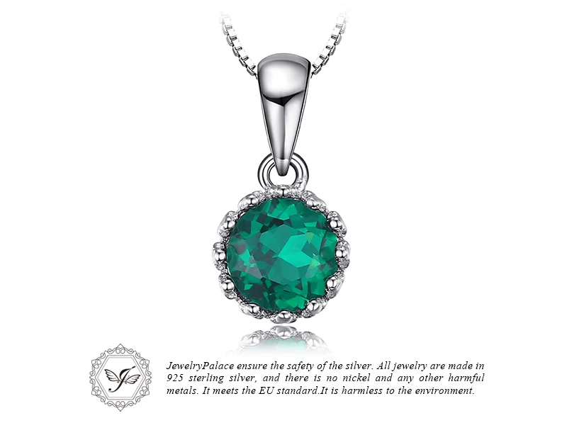 JewelryPalace Round Simulated Nano Emerald 925 Sterling Silver Pendant Necklace for Women Fashion Gemstone Jewelry Without Chain