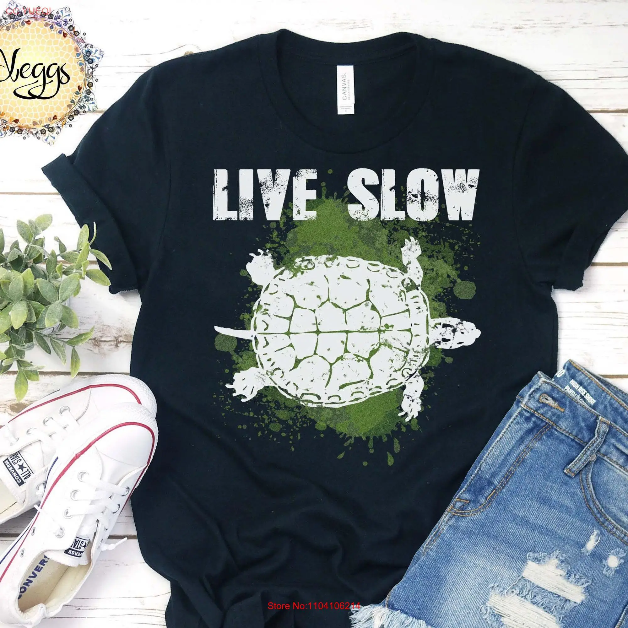 Live Slow Turtle T Shirt Inspirational s Lover Quotes Sea Tortoise long or short sleeves