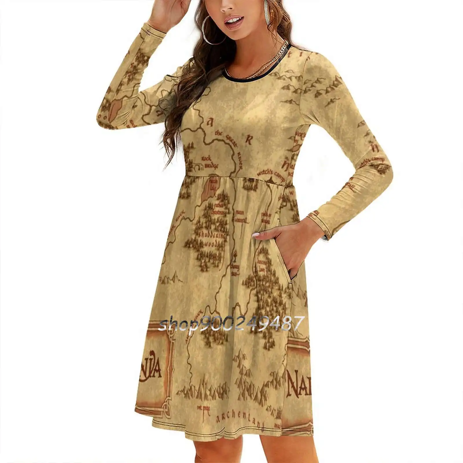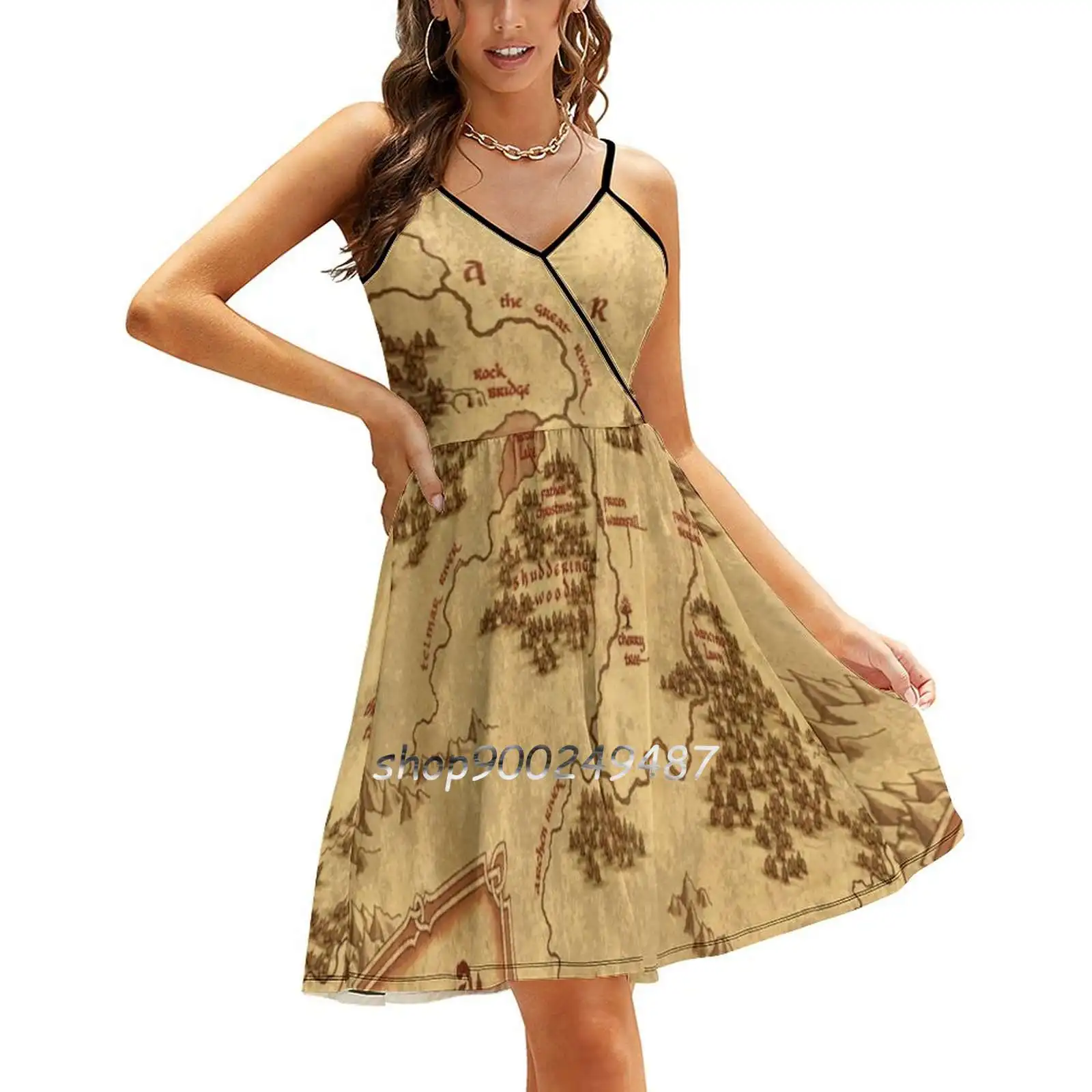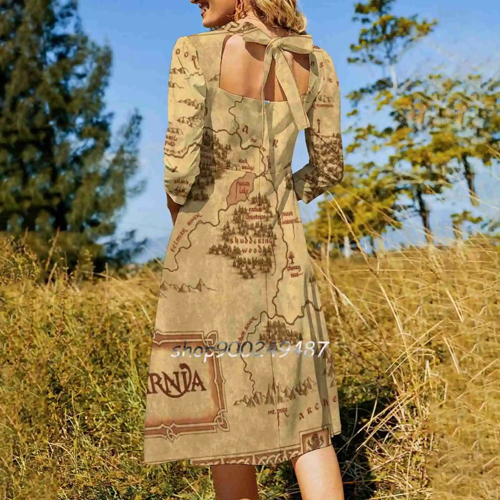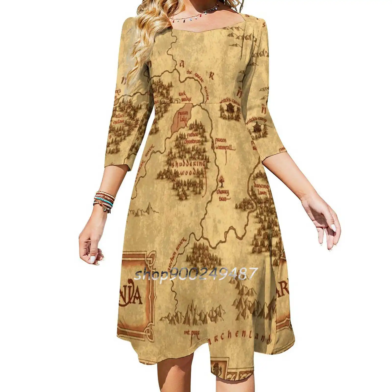 Map Square Neck Dress Sweet Summer Dress Women Elegant Halter Print Dress Map Fantasy Lion World Magic Tv Series Movies America