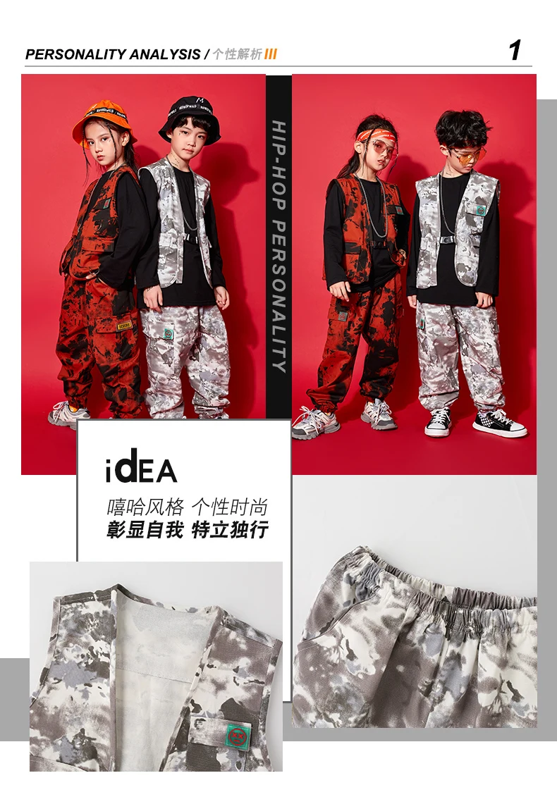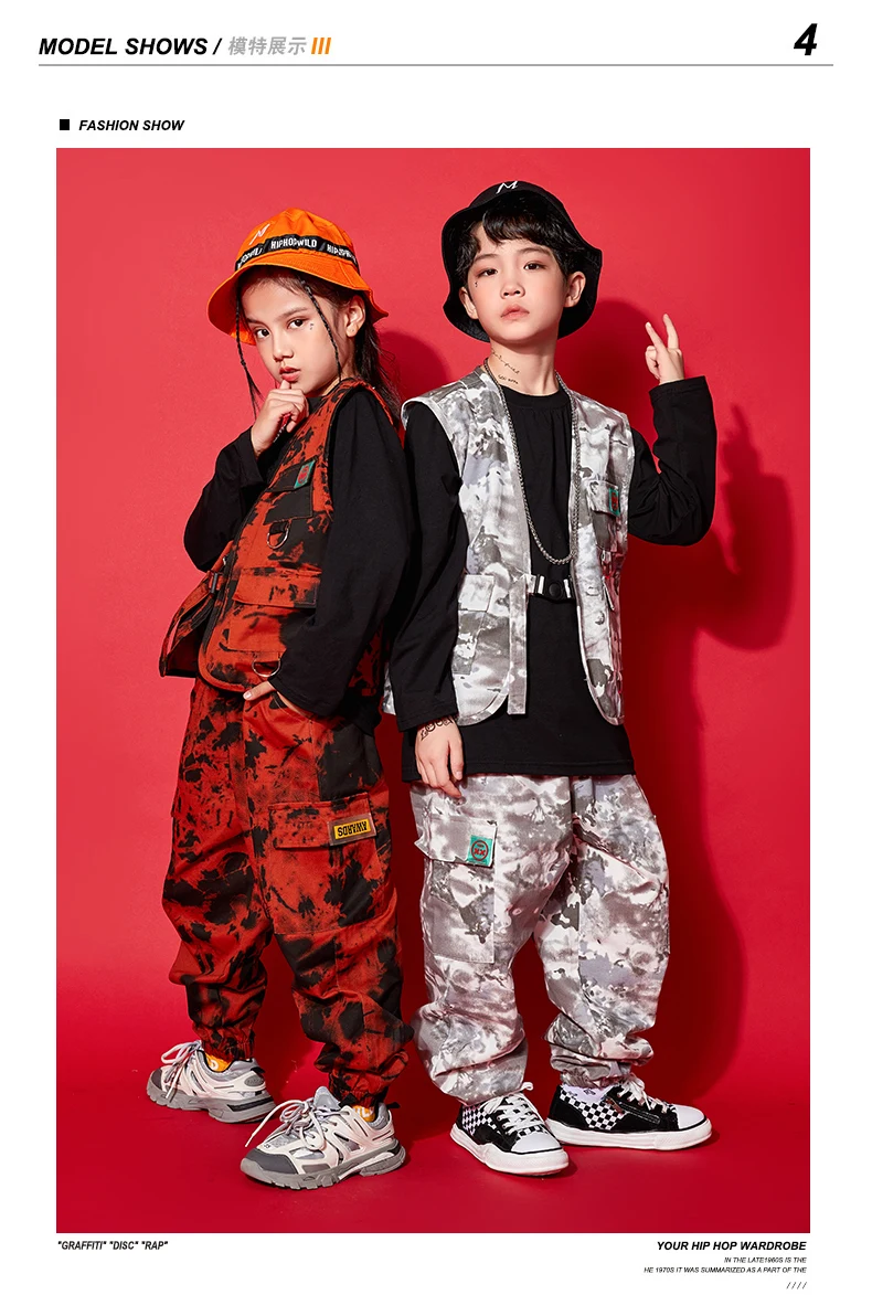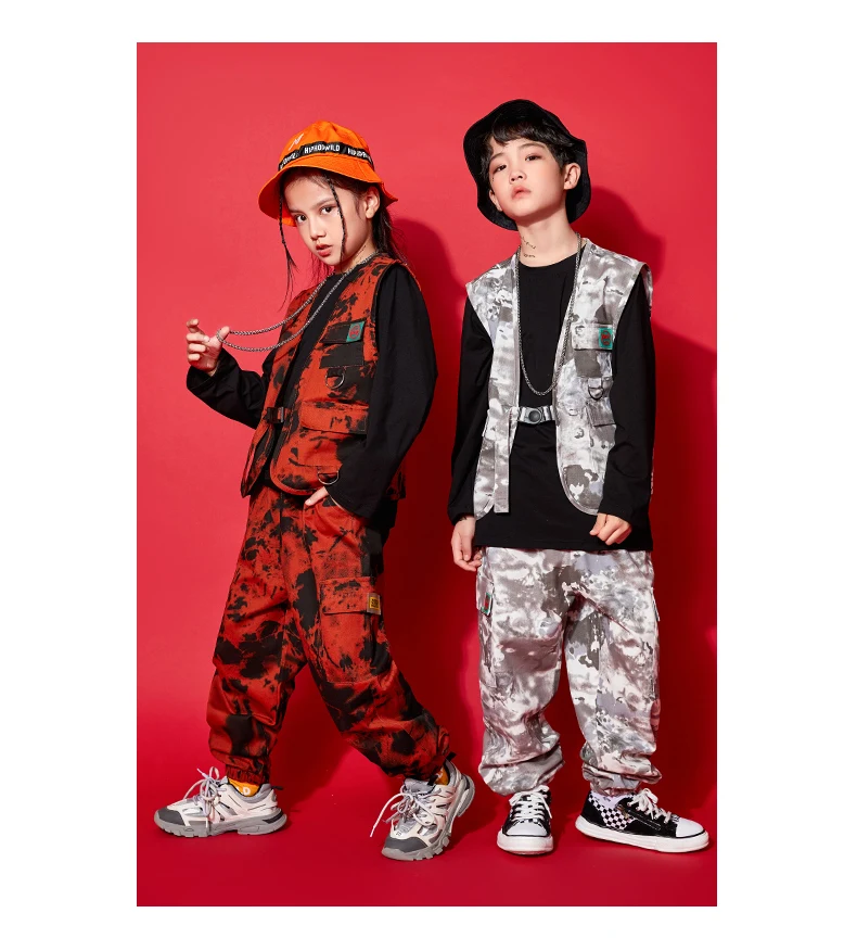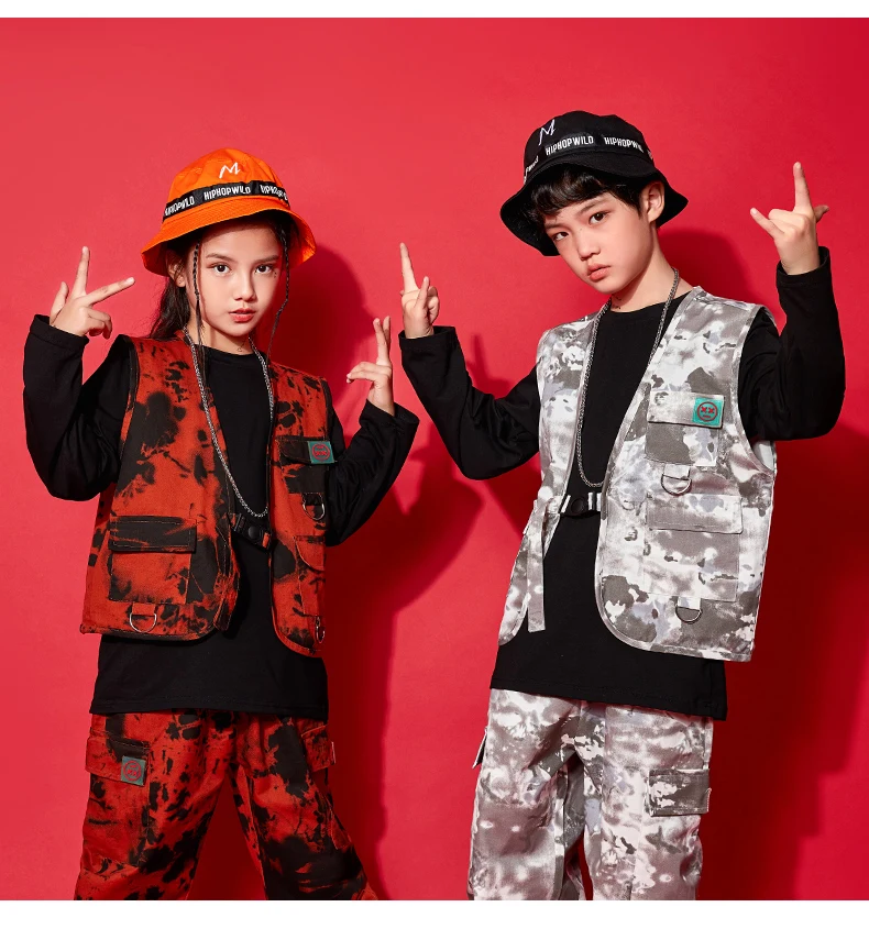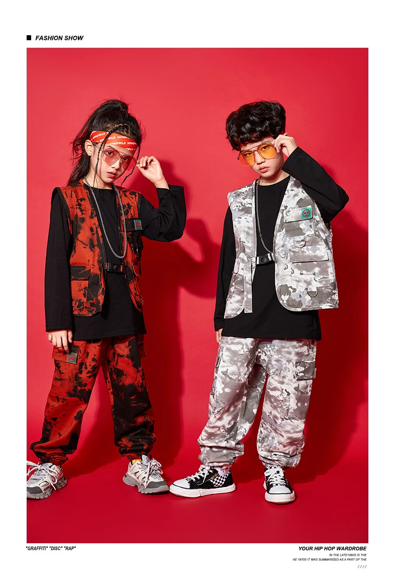 Modern Hip Hop Dance Clothes Kids Costume Camouflage Vest Pants Girls Long Sleeves Suit Boys Street Dance Outfit Rave Wear L9730