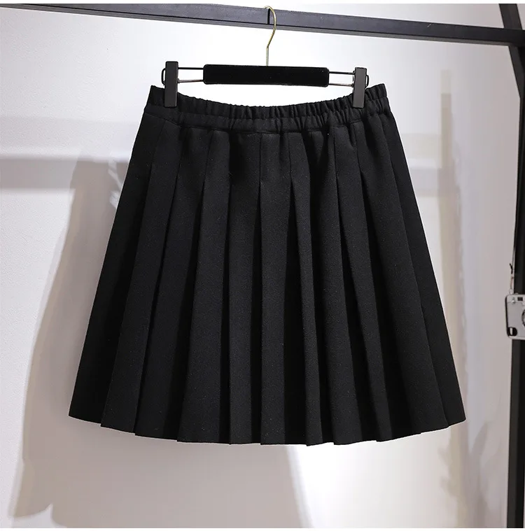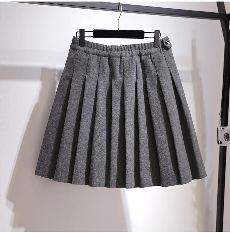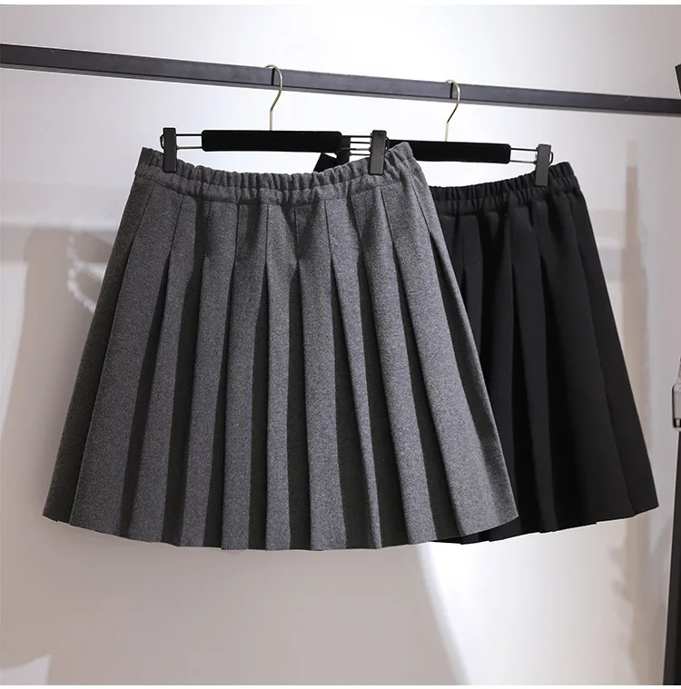 New Ladies Autumn Winter Plus Size Mini Skirt For Women Large A-line Black Gray Woolen Thick Pleated Skirts 3XL 4XL 5XL 6XL 7XL