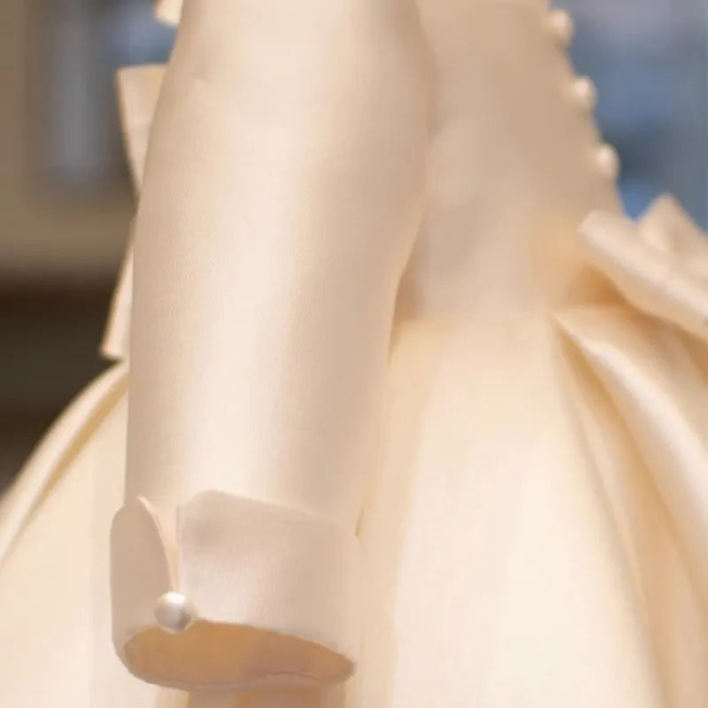 Newborn Girl Princess Bow Button Dress Long Sleeve Infant Toddler Child Vestido Wedding Party Birthday Baby Clothes 12M-10Y