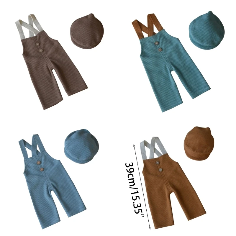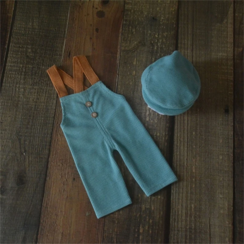 Newborn Photography Props Set Baby Boy Picture Outfits Newborn Boy Overalls Photo Studio Clothes Boy Costume Hat