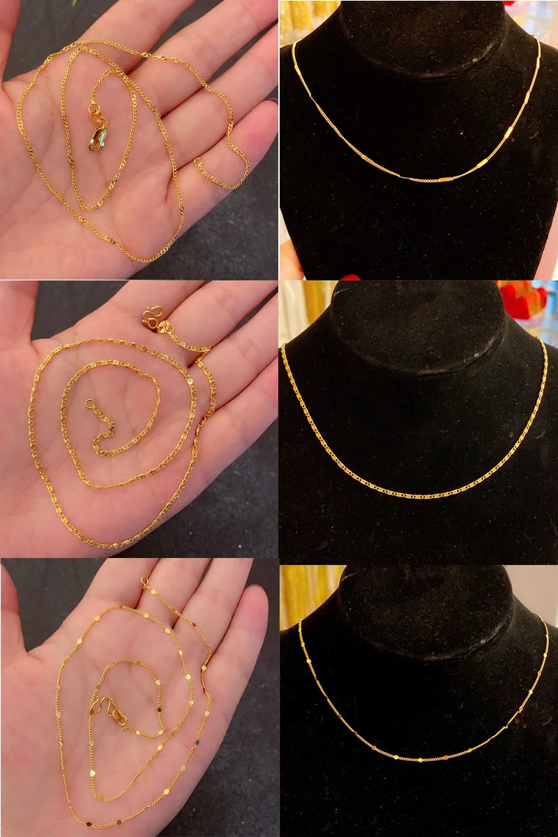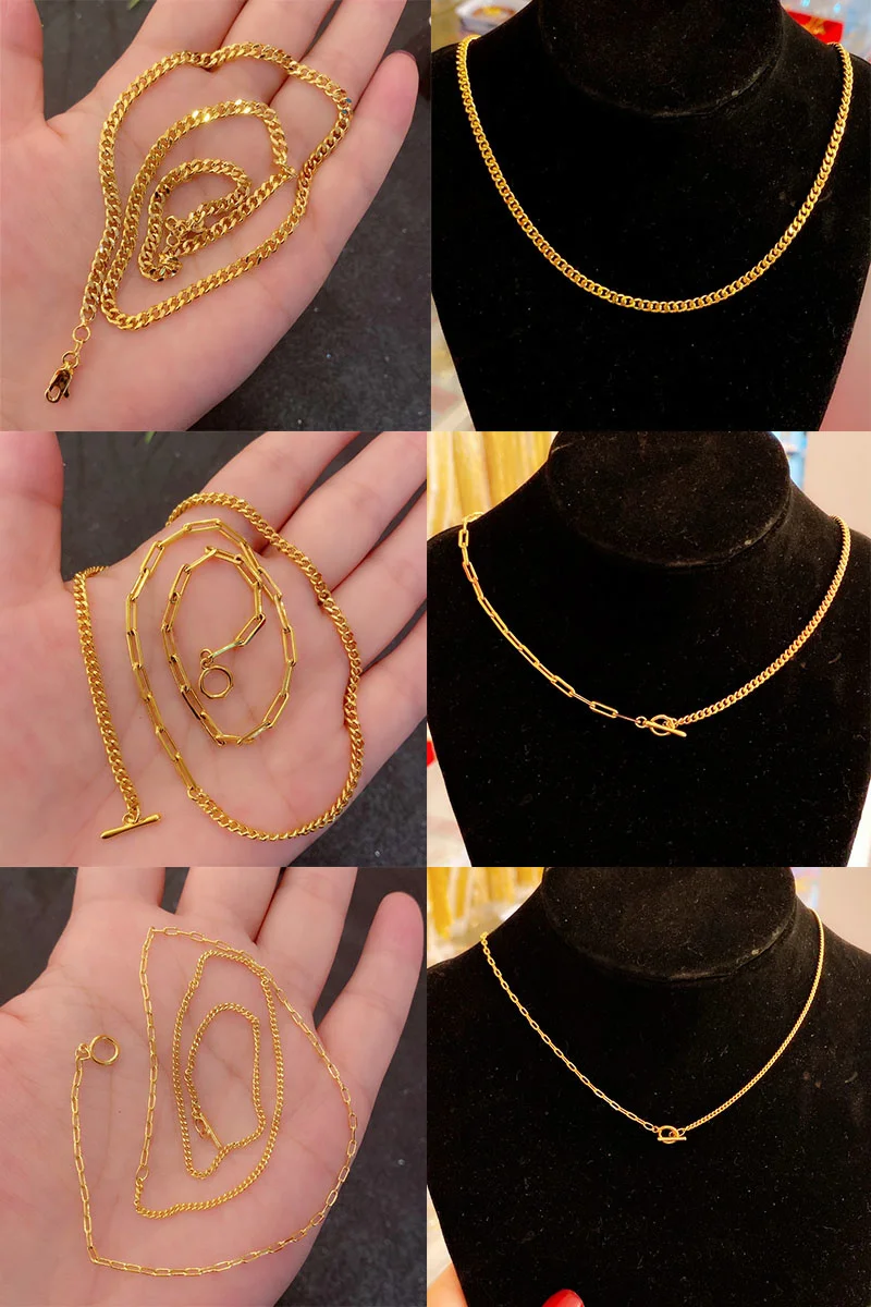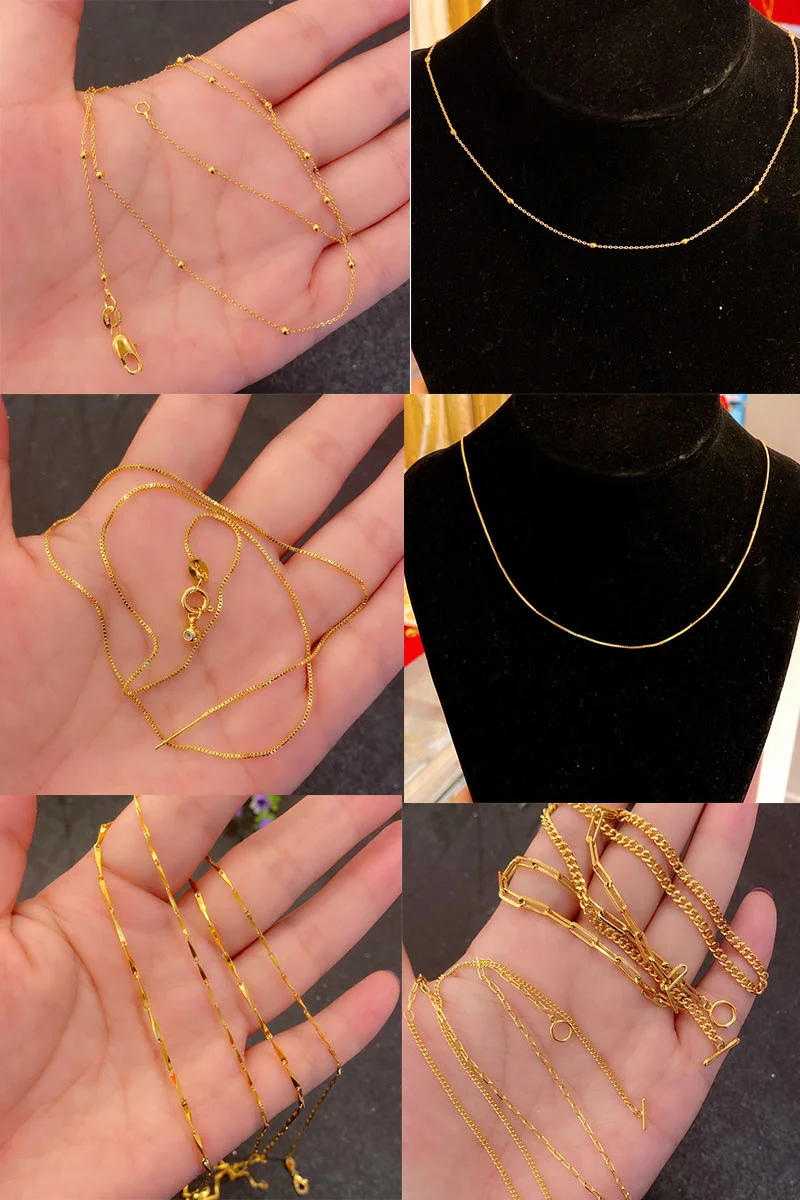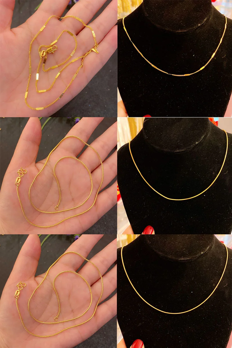 Plated 100% Real Gold 24k Pure Simple Plain Chain Necklace Ab Ot Buckle Ins Wind Like Anti Allergic Colorless Clavicle For Women