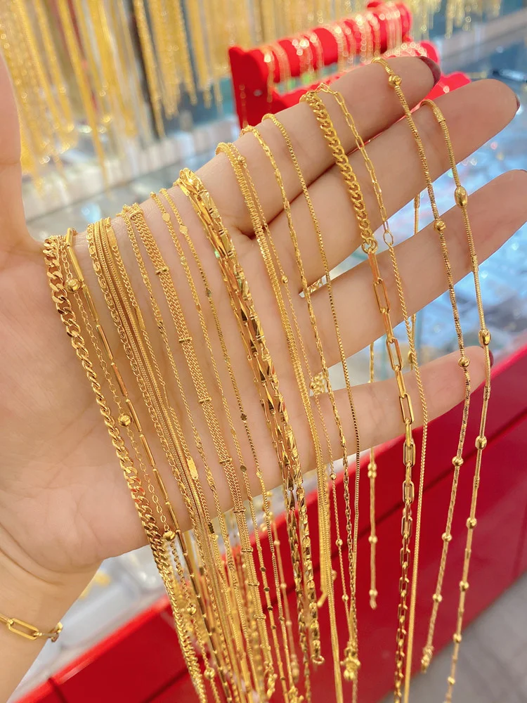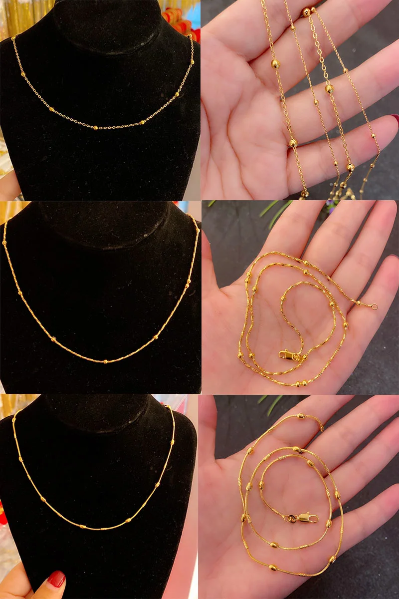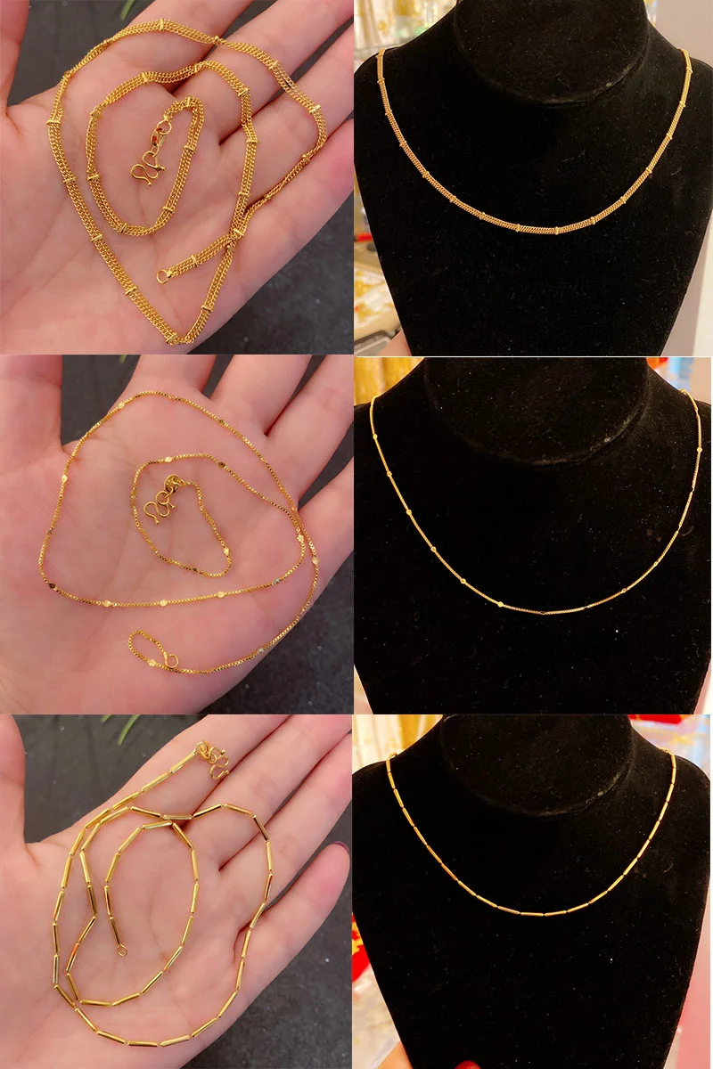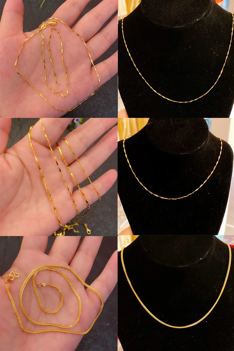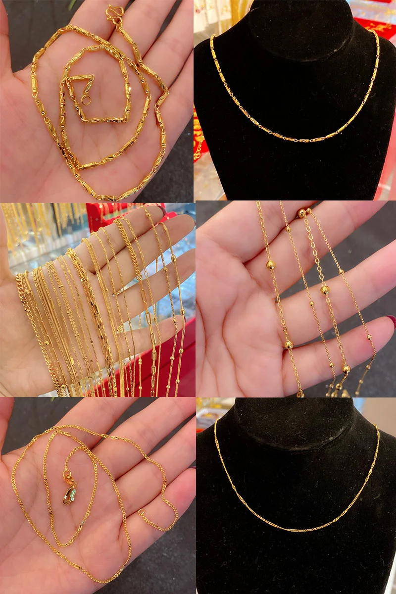 Plated 100% Real Gold 24k Pure Simple Plain Chain Necklace Ab Ot Buckle Ins Wind Like Anti Allergic Colorless Clavicle For Women