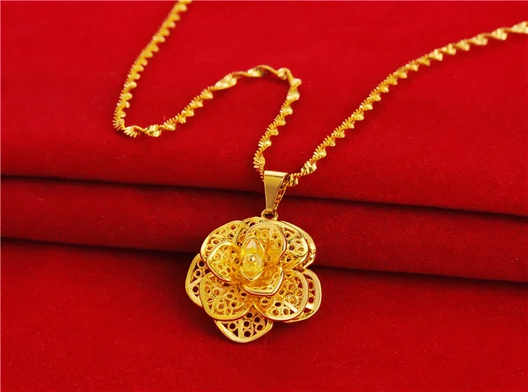 Pure Necklace Female 24k 999 Color Collar Chain Pendants Long Lasting 100% Plated Real Gold 18k False Jewelry for Women's Gifts