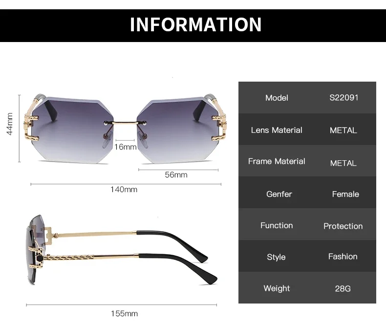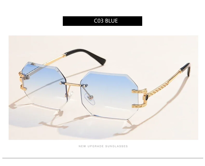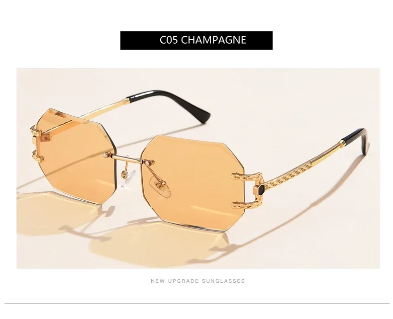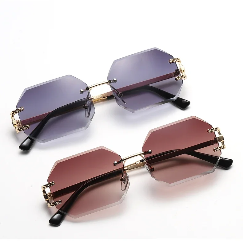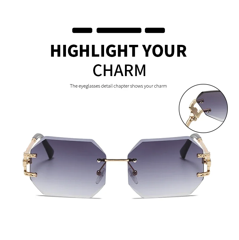 Retro Sunglasses Women Rimless Polygon Sun Glasses Fashion Shades Square Cutting Lens Ladies Frameless Eyeglasses