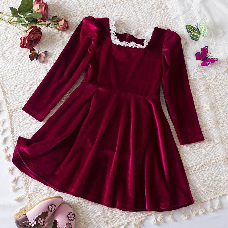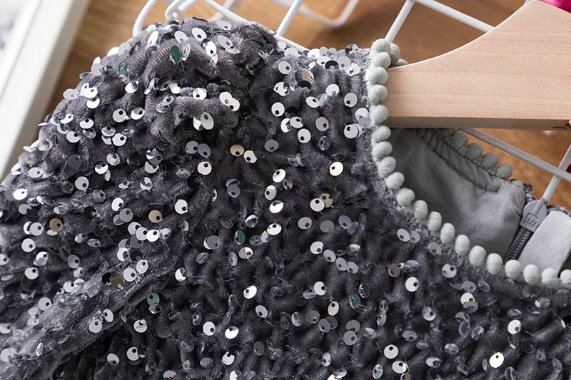 Sequin Girls Princess Party Dresses for 3-8 Yrs Kids Birthday Wedding Evening Prom Gown Spring Fall Long Sleeve Children's Dress