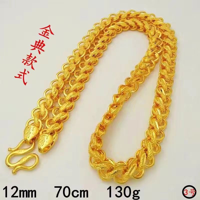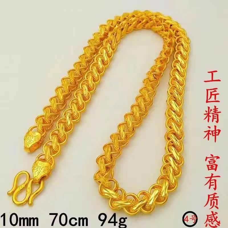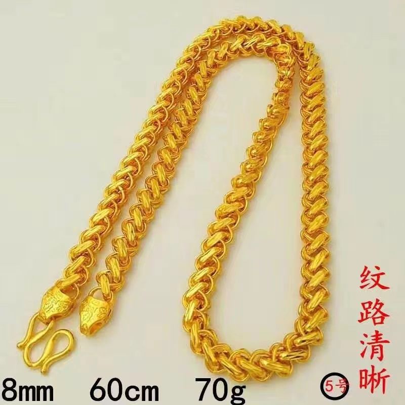 Simulation Color 18K Gold Real Gold Necklace Men's Frosted Temperament Thailand Chain Hollow out Domineering Men's Necklace