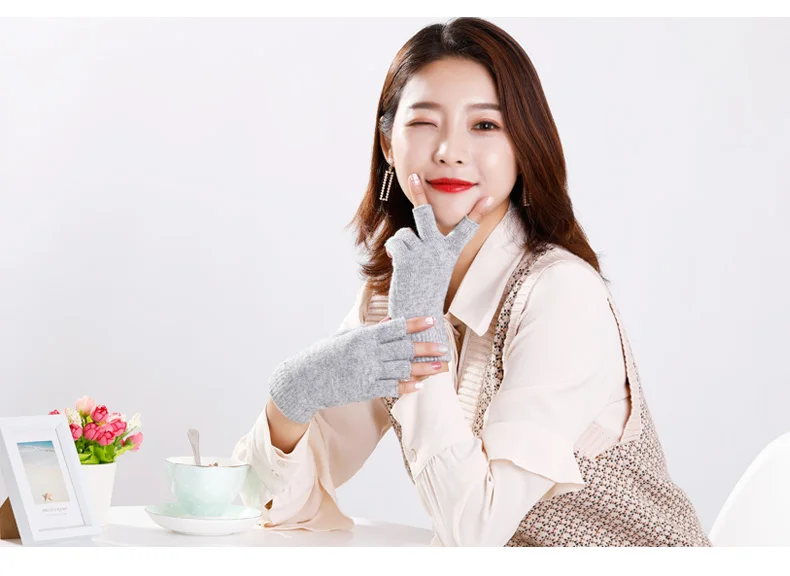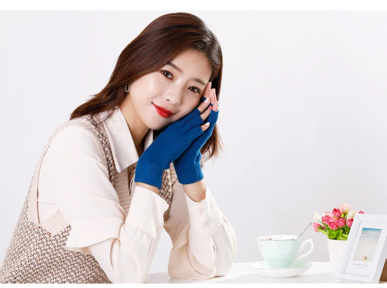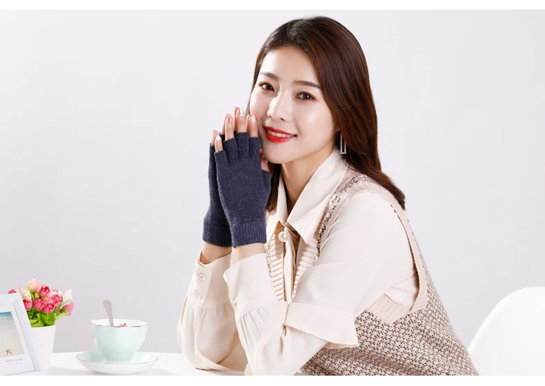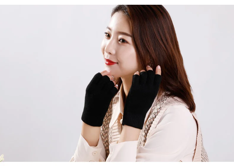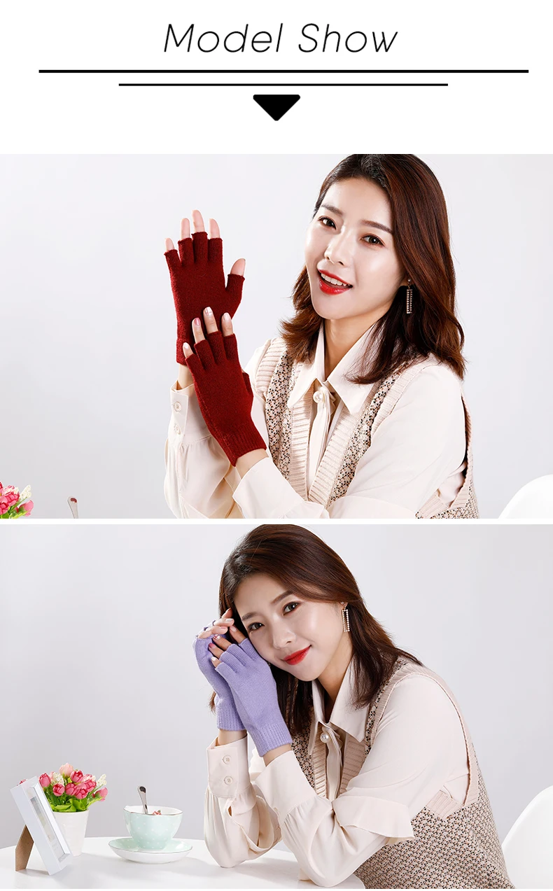 Sparsil Women Men Half Finger Cashmere Glove Short Wool Knitted Wrist Mitten Winter Warm Unisex Wollen Stretch Fingerless Gloves