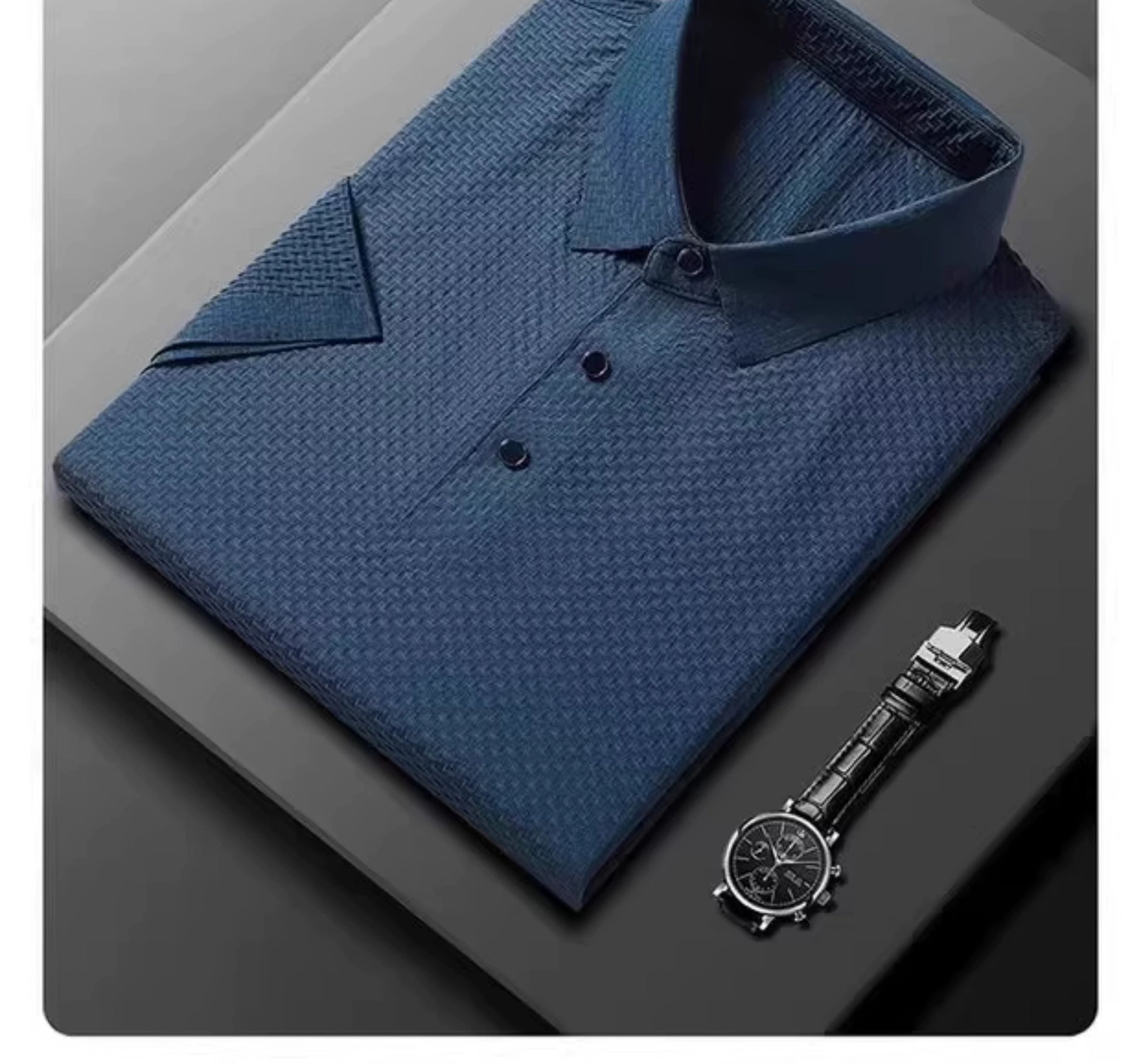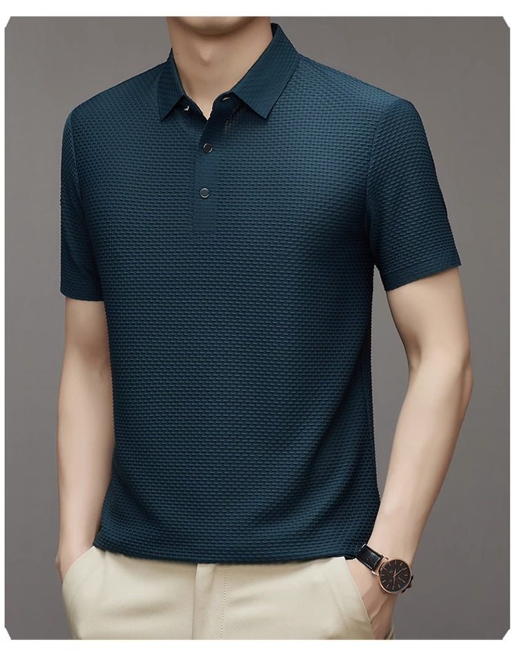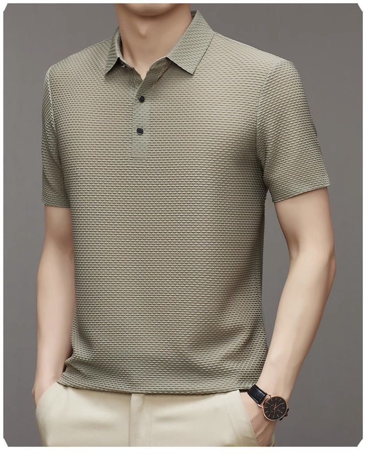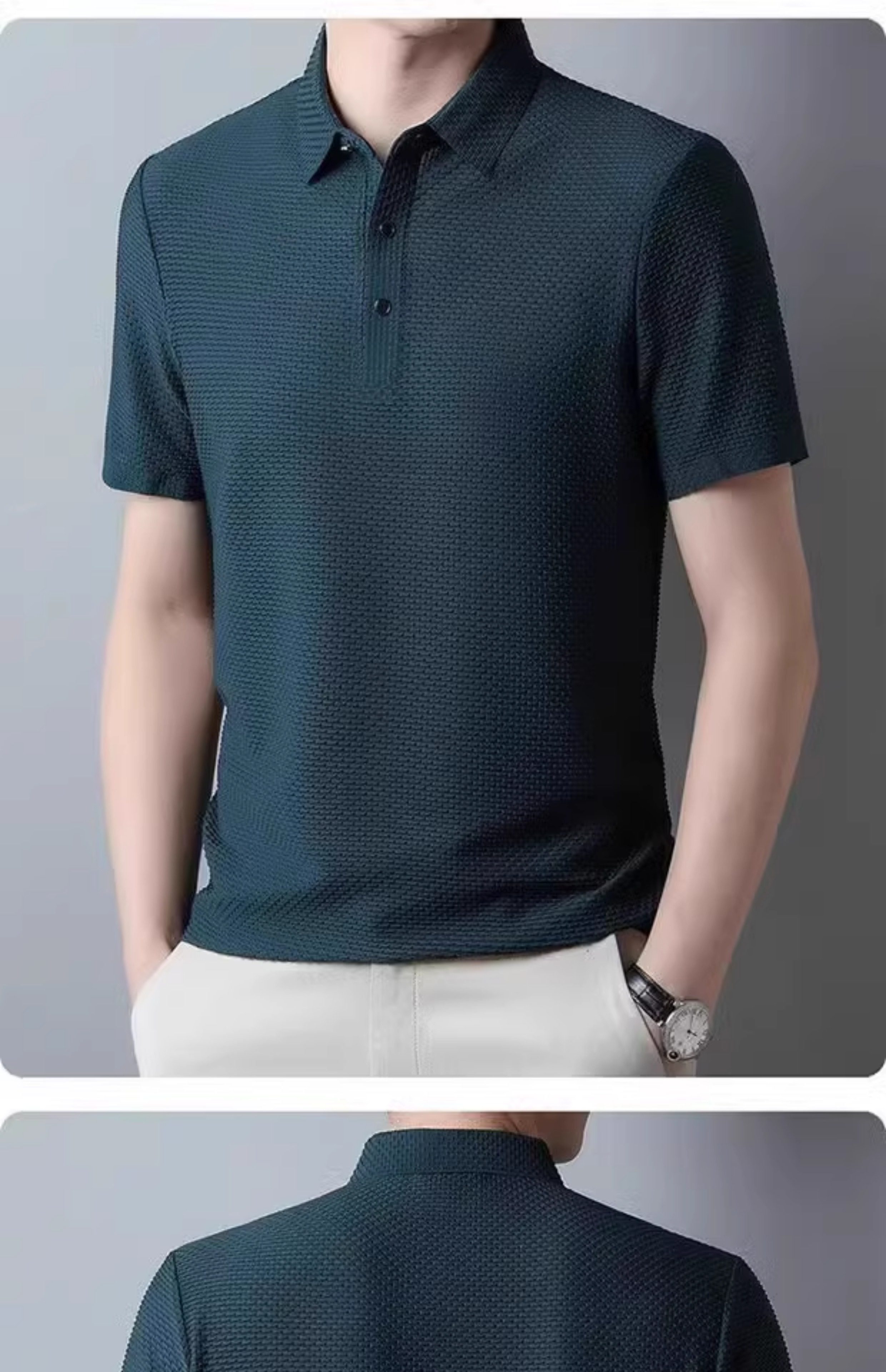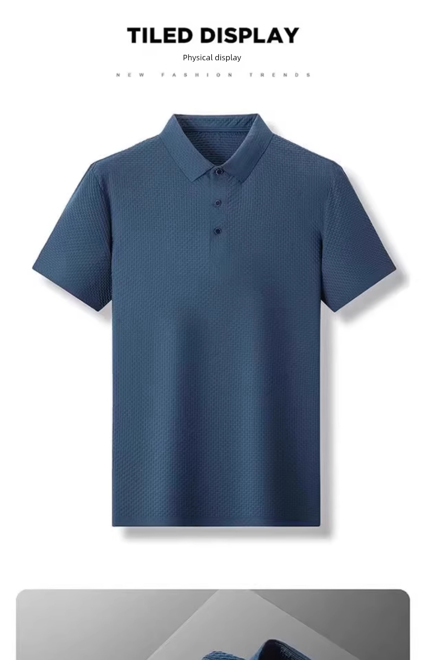 Summer Golf Ice Silk Short Sleeve T-shirt Men's Shirt Collar Polo Shirt Quick-Drying Mesh Pure Color Cool Feeling Breathable Half Sleeve