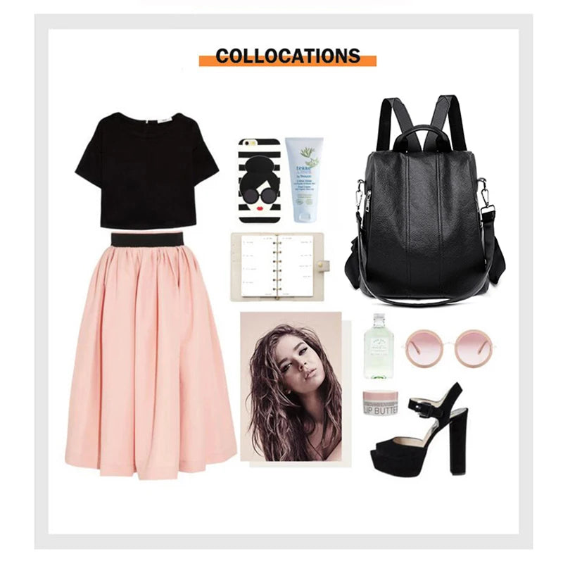 Summer White Fashion PU Leather Anti-thief Backpack Large Volume School Bag for Teenager Girls Multifunction Casual Sac a Dos