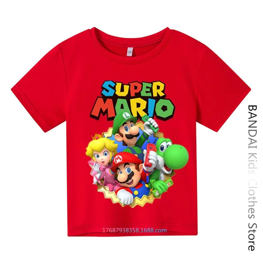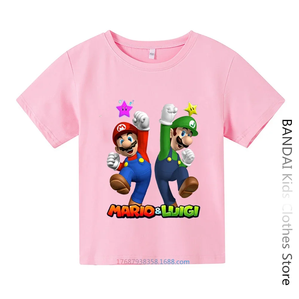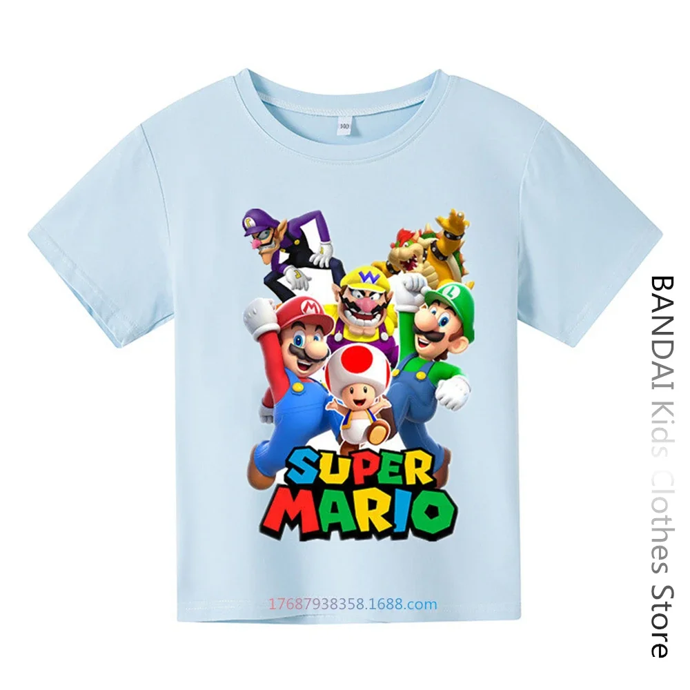 Super Mario Tshirt Kids Fashion Baby Boy Clothes Mario Bros T-shirt Pikachu Cotton Children Tops Girls Clothing Casual Tees