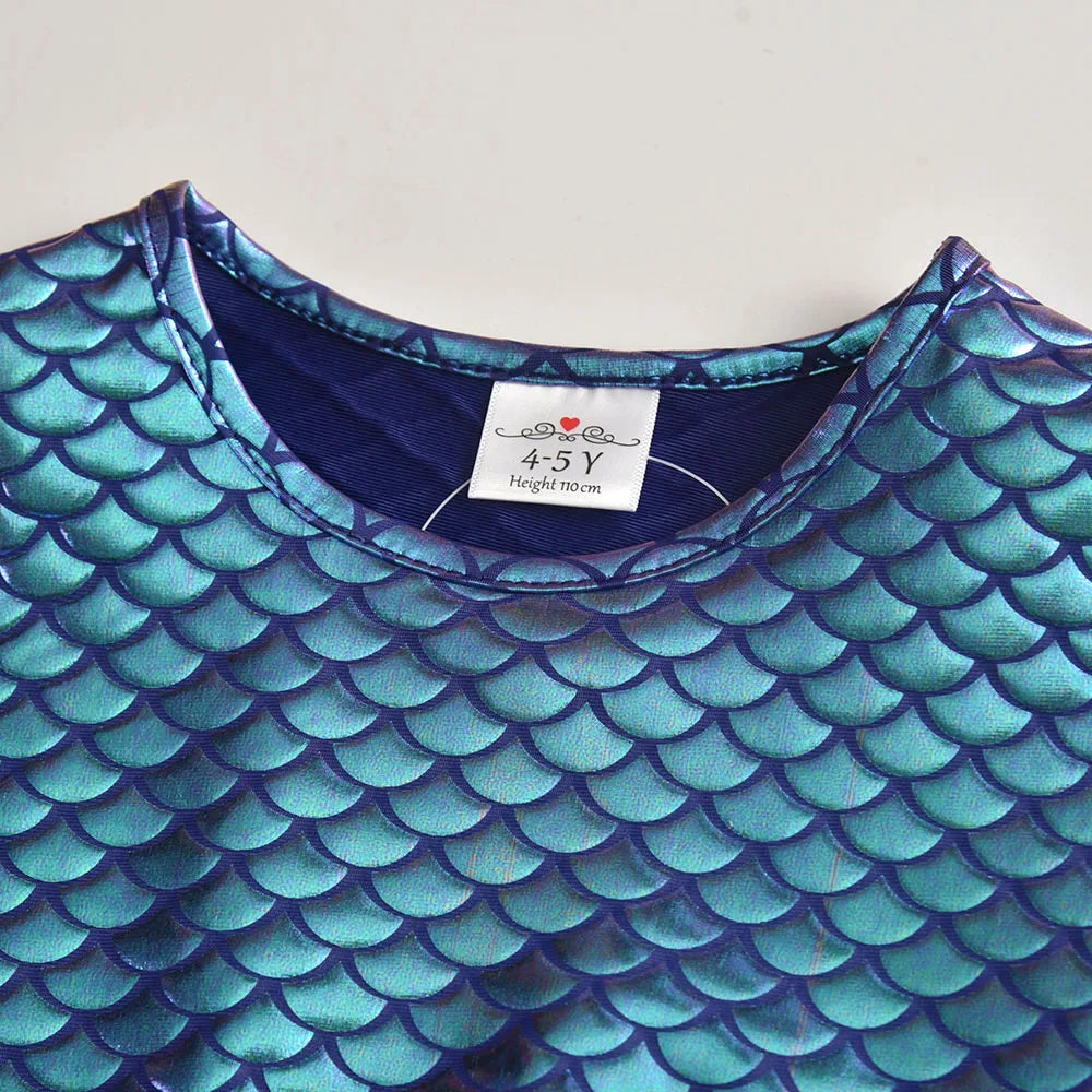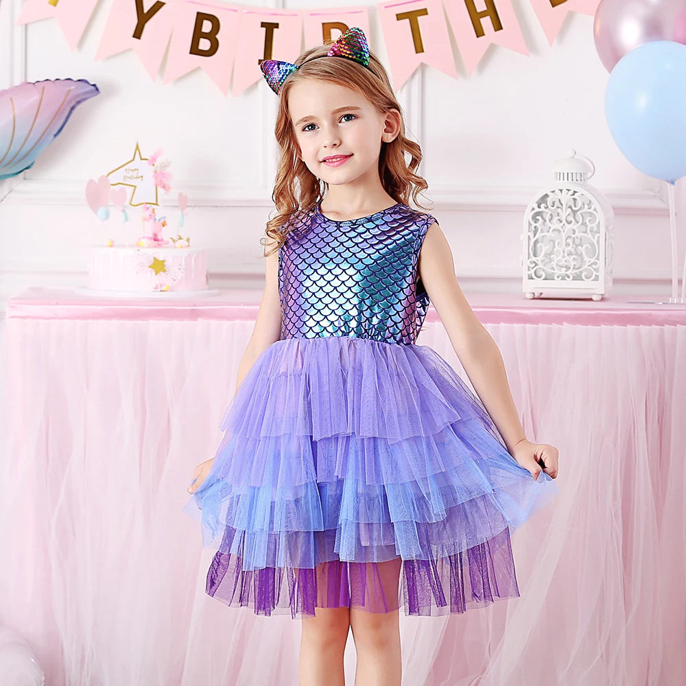 VIKITA Girls Mermaid Print Summer Sleeveless Dresses Girls Birthday Party Prom Gown Princess Dress Kids Layered Cake Tutu Dress