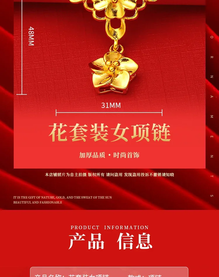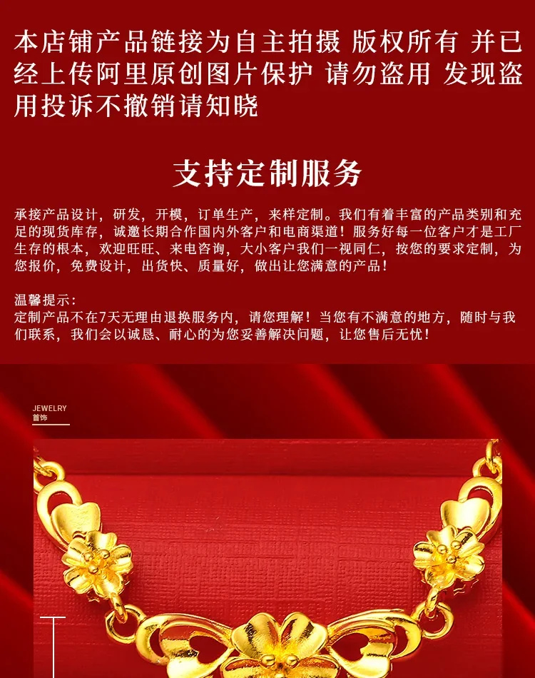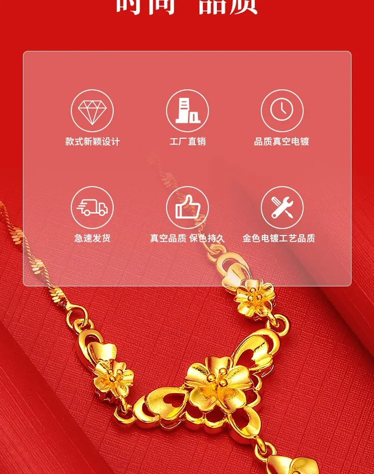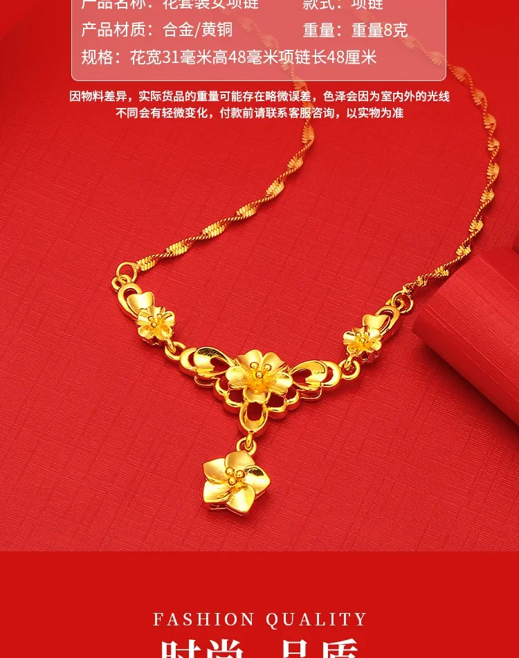 Wedding Window% Plated Real 999 Gold 18ken Pig Flower Necklace Women's Bride Color Chain Women's Gif