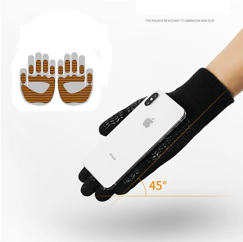 Winter Knitted Men's Gloves Touch Screen Anti-skid Solid Business Driving Cycling Full Finger Autumn Non-slip Rubber Male Gloves