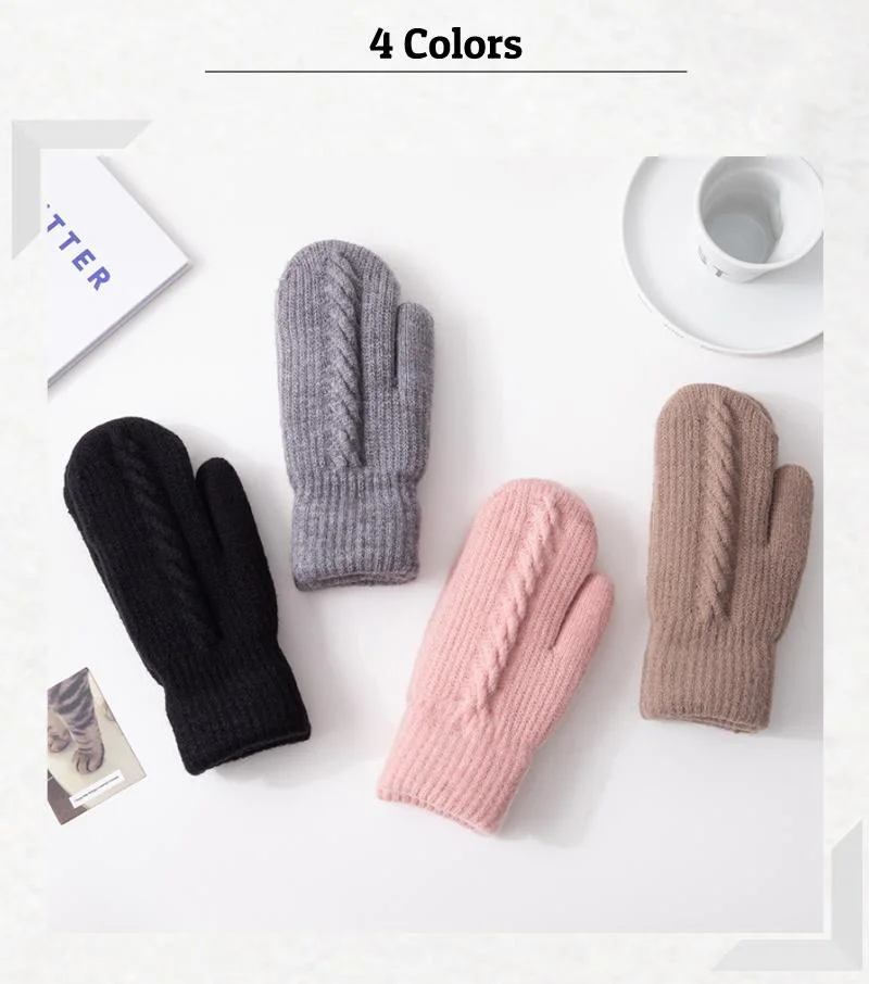 Winter Women Knit Mittens Soft Thermal Hand Warmers Cozy Fleece-Lined Warm Gloves Cold Weather Knit Gloves for Outdoor Wear