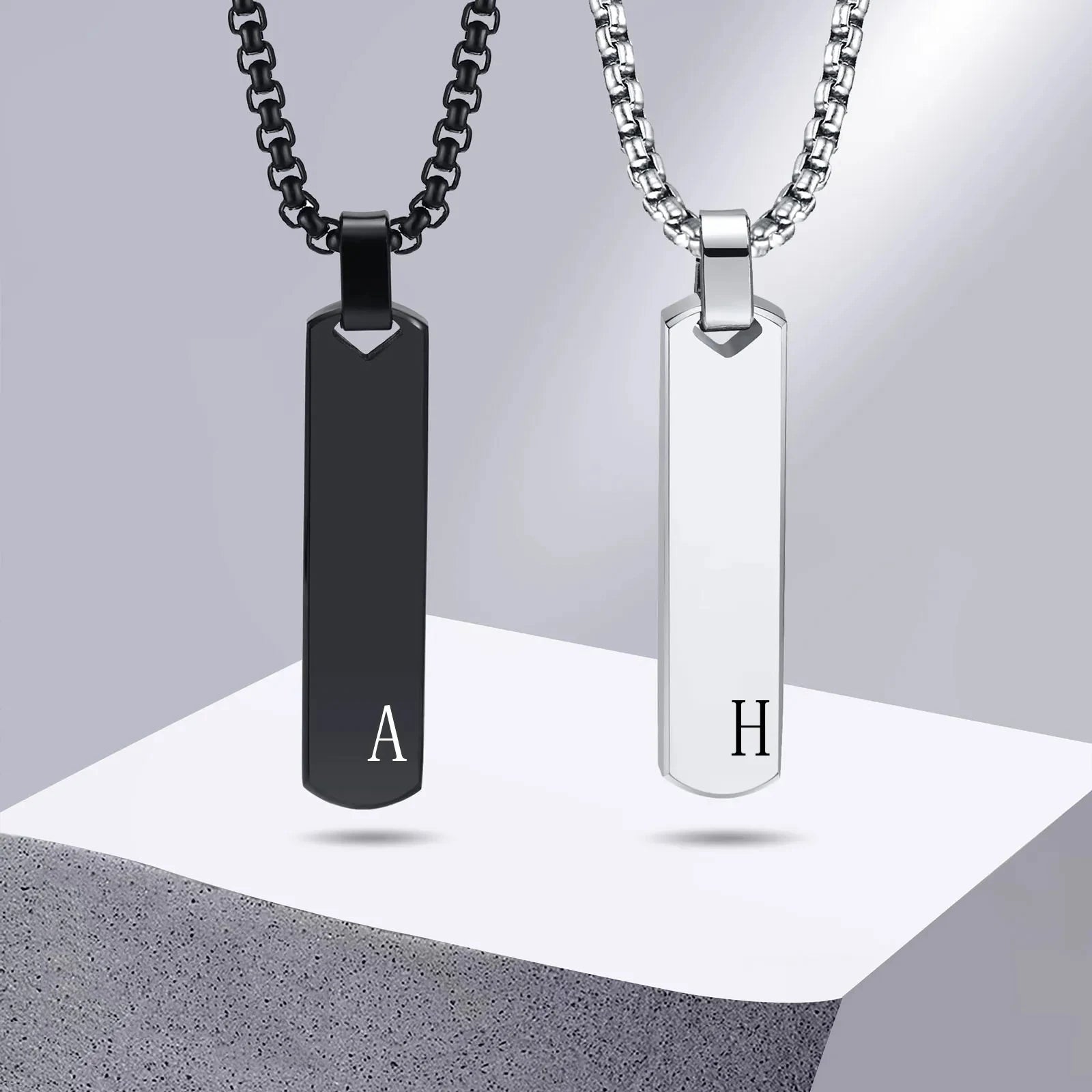 WLP Stainless Steel Custom Letter Bar Necklace for Men Women Thick Geometric Vertical Bar Personalized Necklace Jewelry Gift