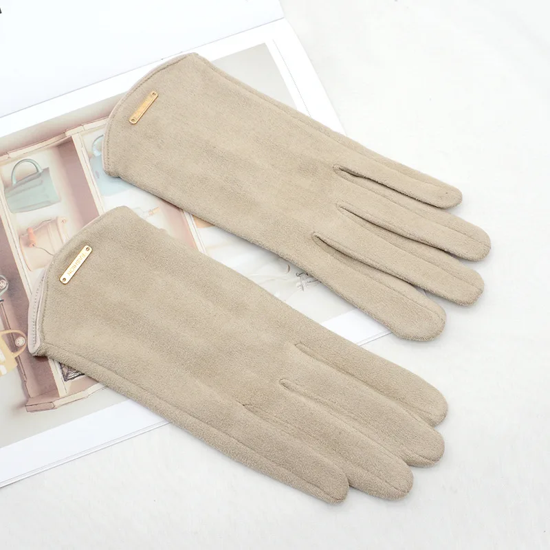 Women Autumn Winter Keep Warm Touch Screen Thin Solid Simple Gloves Cycling Drive Suede Fabric Elegant Windproof