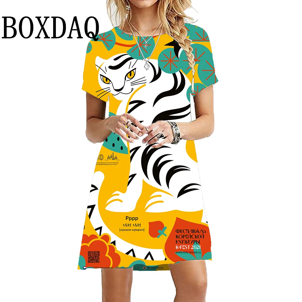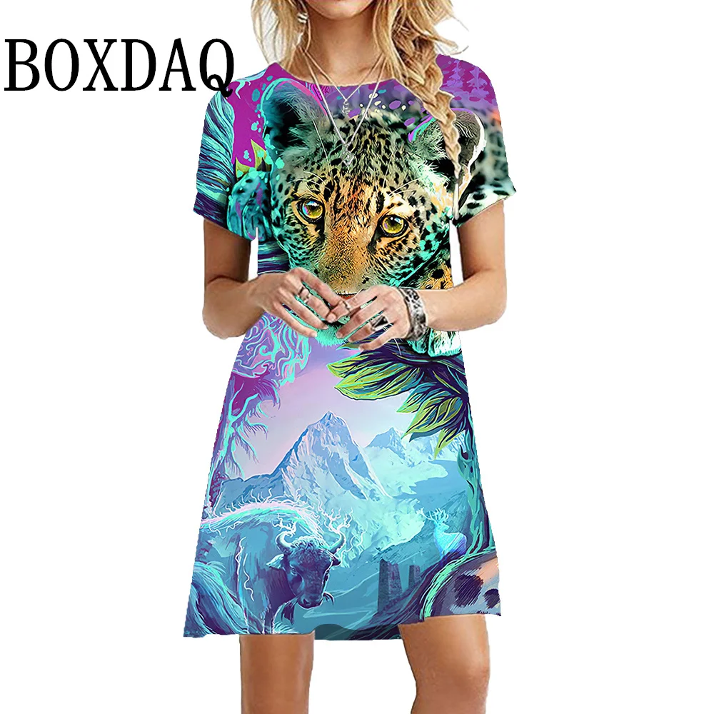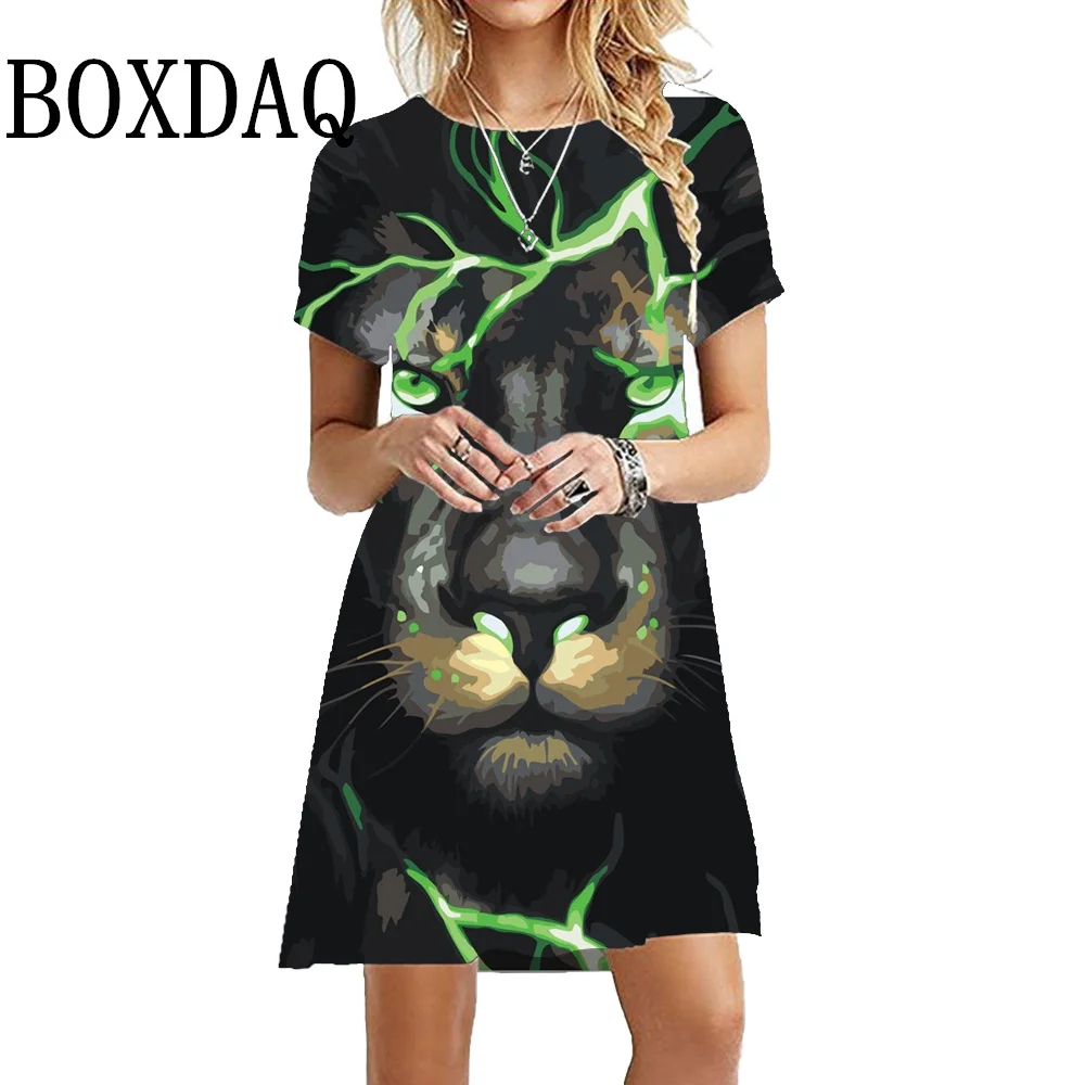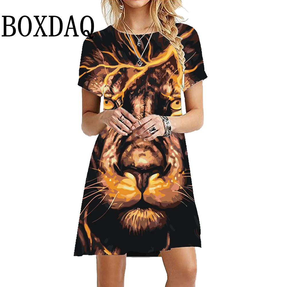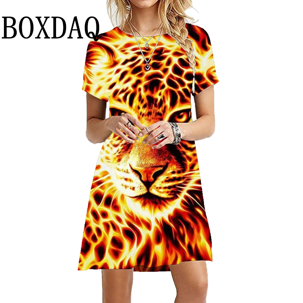 Women Flame Animal Lion 3D Print Dress Summer Fashion Hop Hop Short Sleeve Casual O-Neck Pullover Ladies Oversize Female Clothes