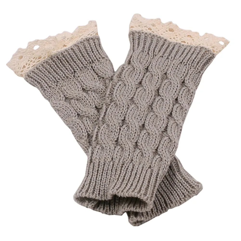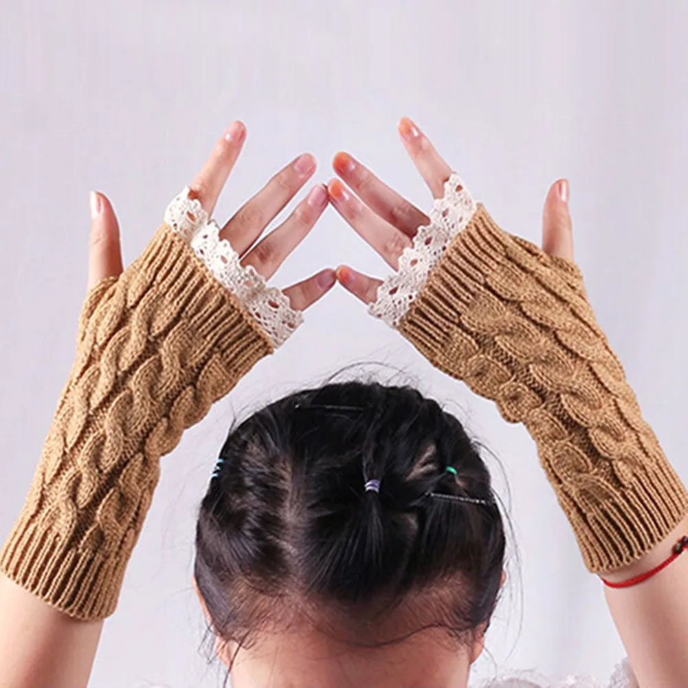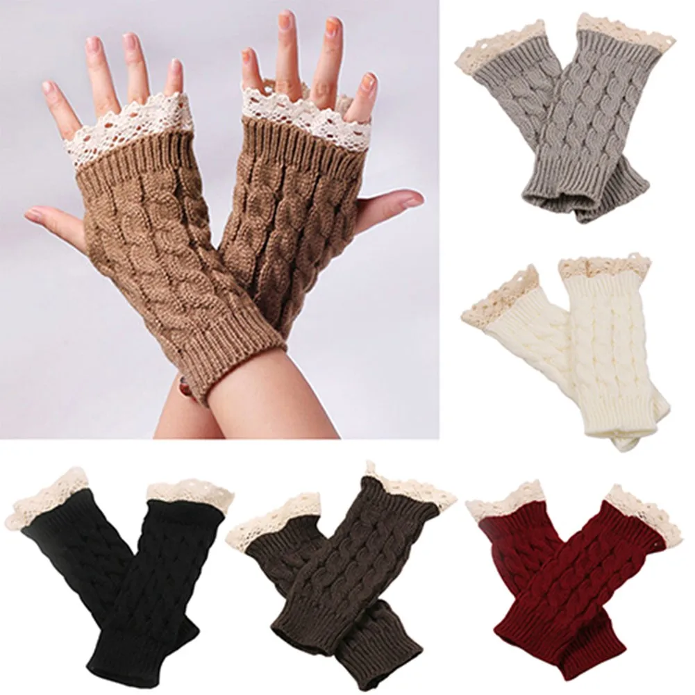 Women Fingerless Lace Gloves Soft Knitted Warm Long Mitten Wrist Warmer Winter Gift
