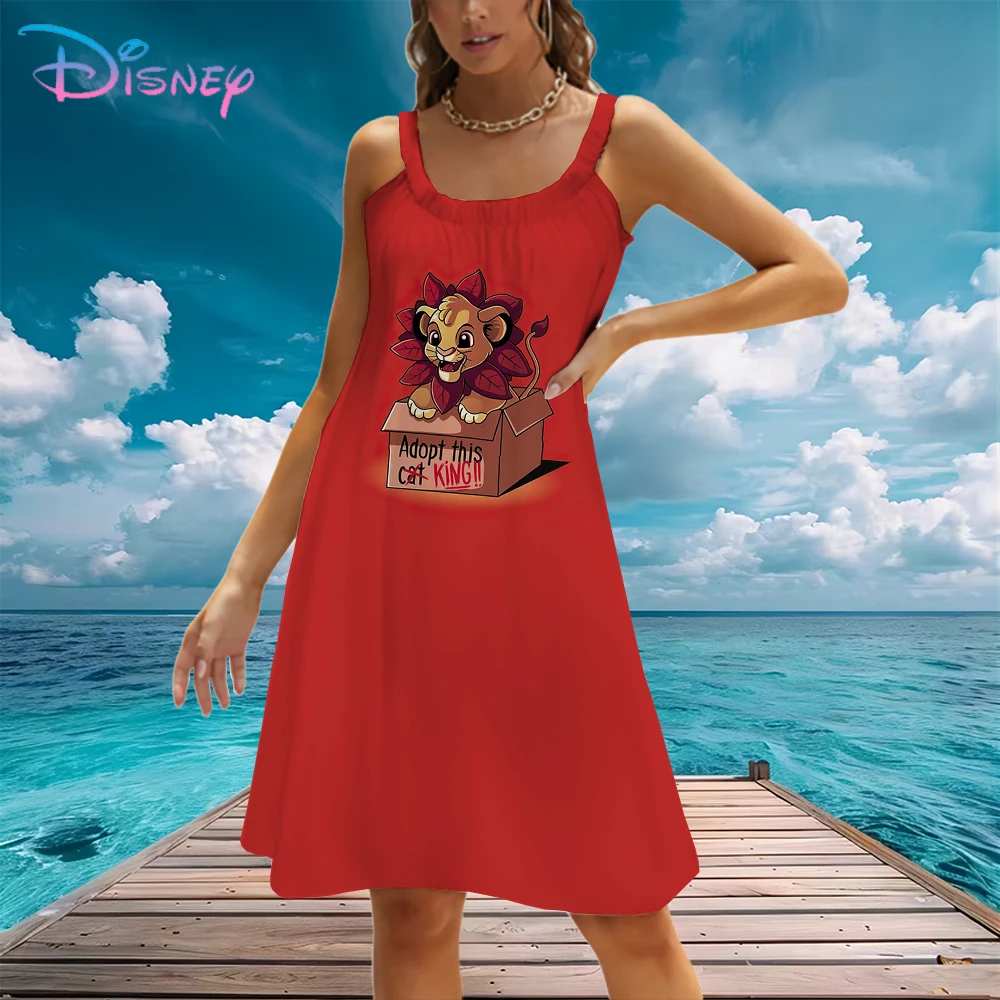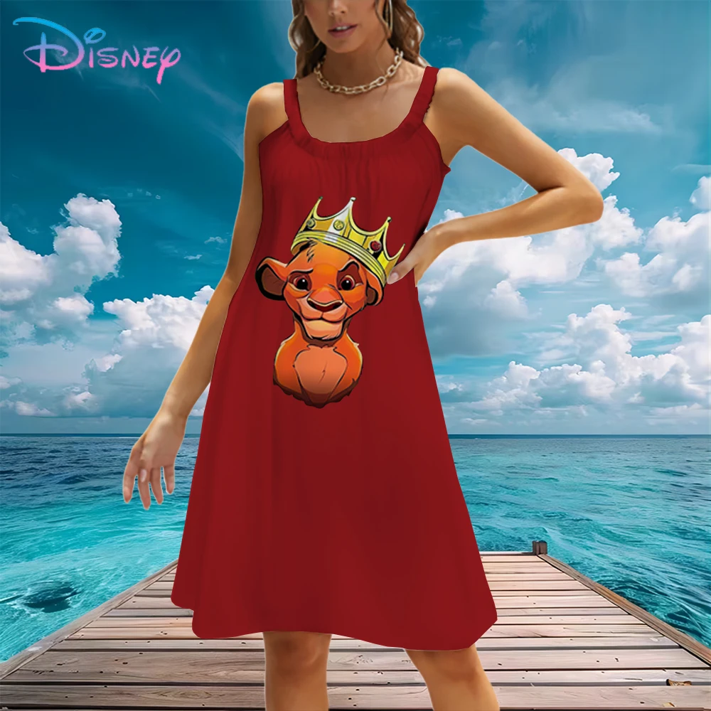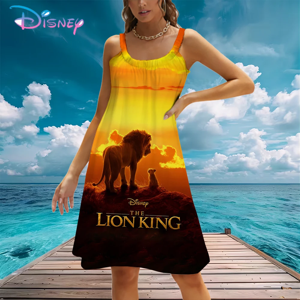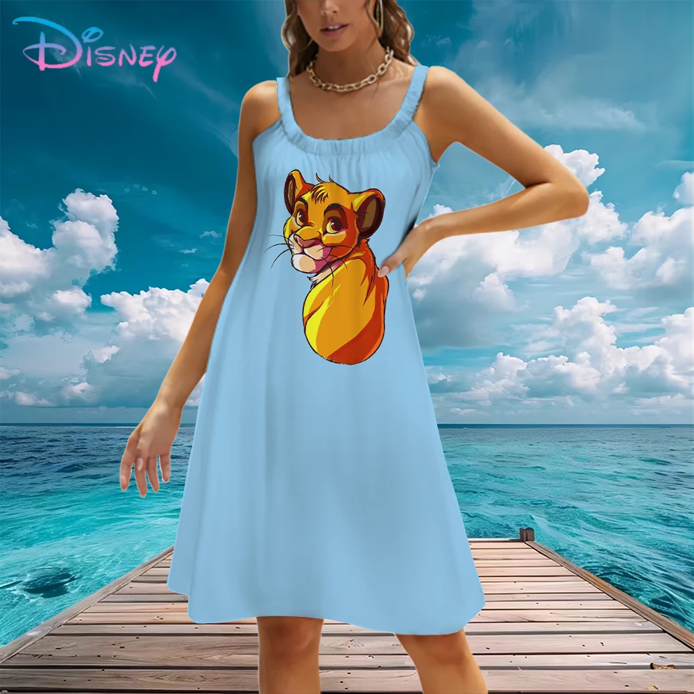 Women's Beach Dress Sling Disney's The Lion King Evening Dresses Fashion Cheap Clothes Kawaii Summer S-3XL 2024 Lovely Leisure